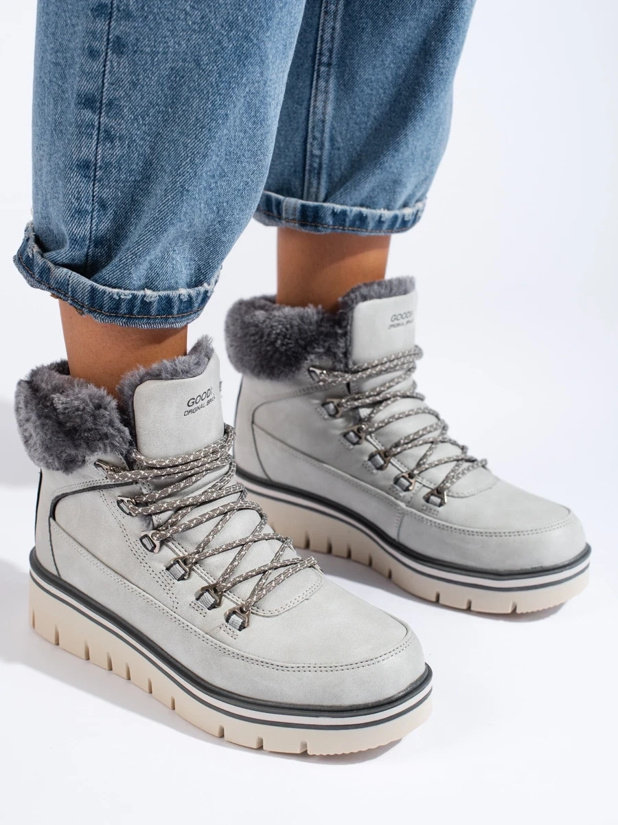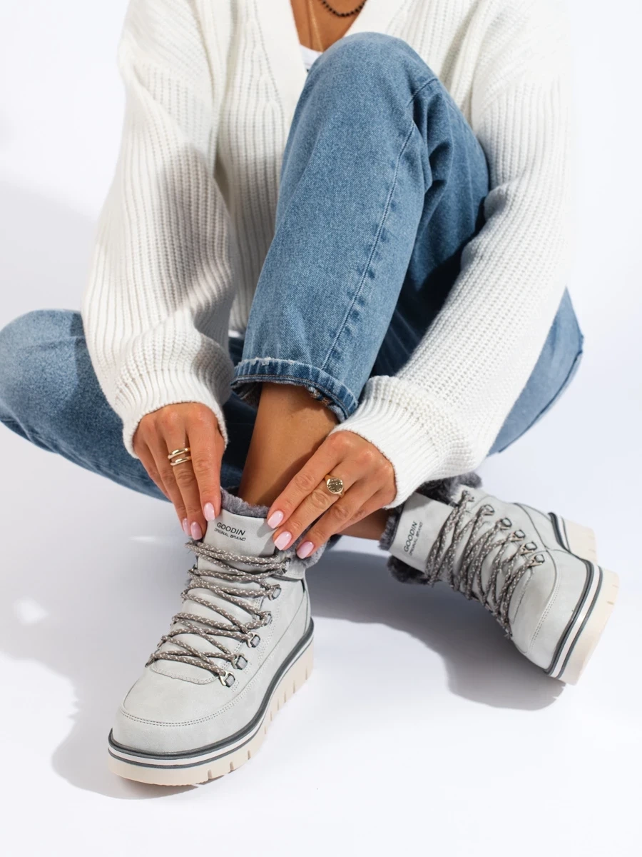 Nasze traperki damskie na platformie zostały stworzone z myślą o kobietach ceniących wygodę i trwałość. Wykonane z wysokiej jakości imitacji skóry, zapewniają nie tylko atrakcyjny wygląd, ale także odporność na uszkodzenia. Szary kolor dodaje charakteru i pasuje do wielu stylizacji, zarówno eleganckich, jak i casualowych.