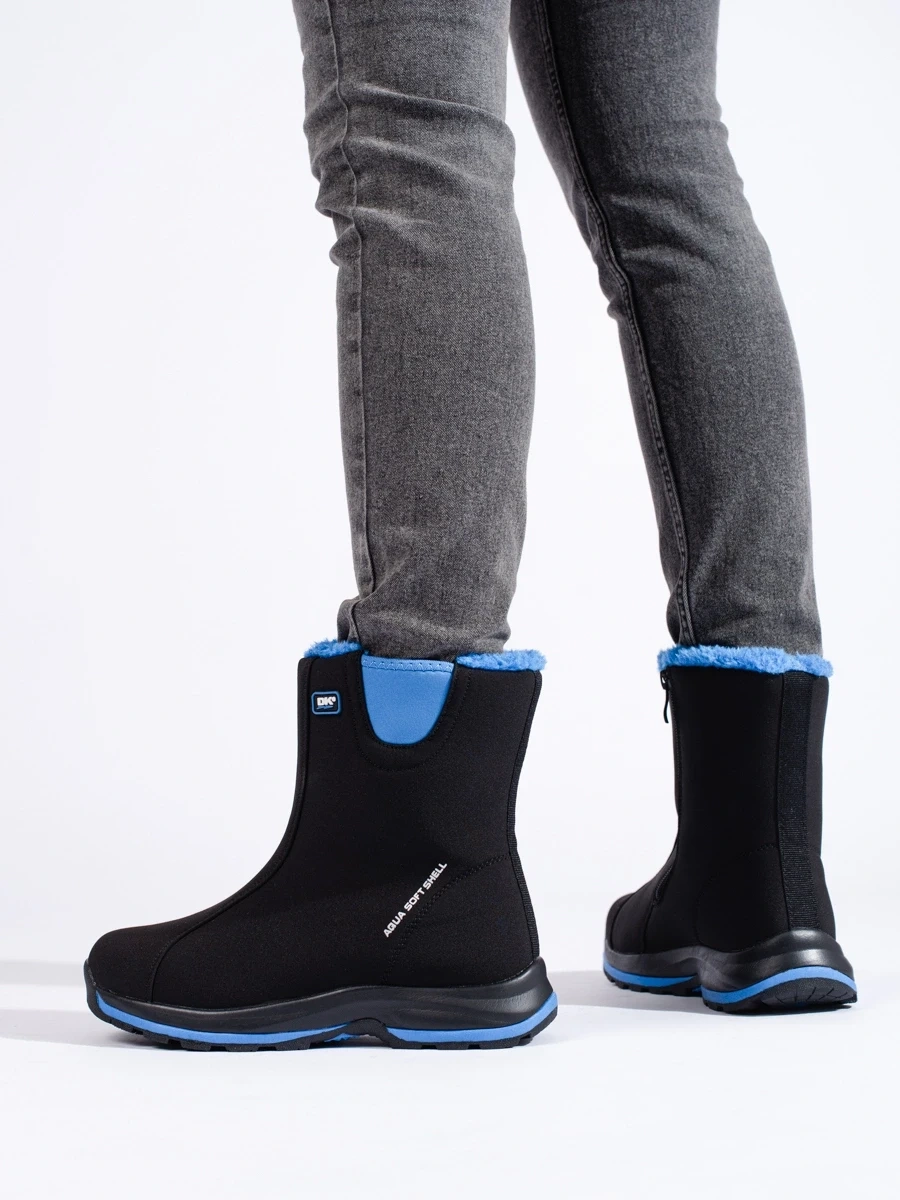 Śniegowce damskie DK ocieplane futerkiem Softshell czarno-niebieskie - komfort i styl nawet w najchłodniejsze dni