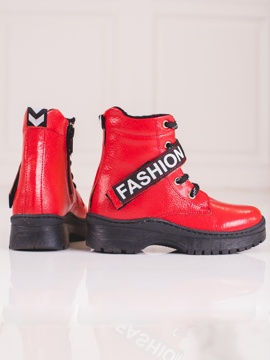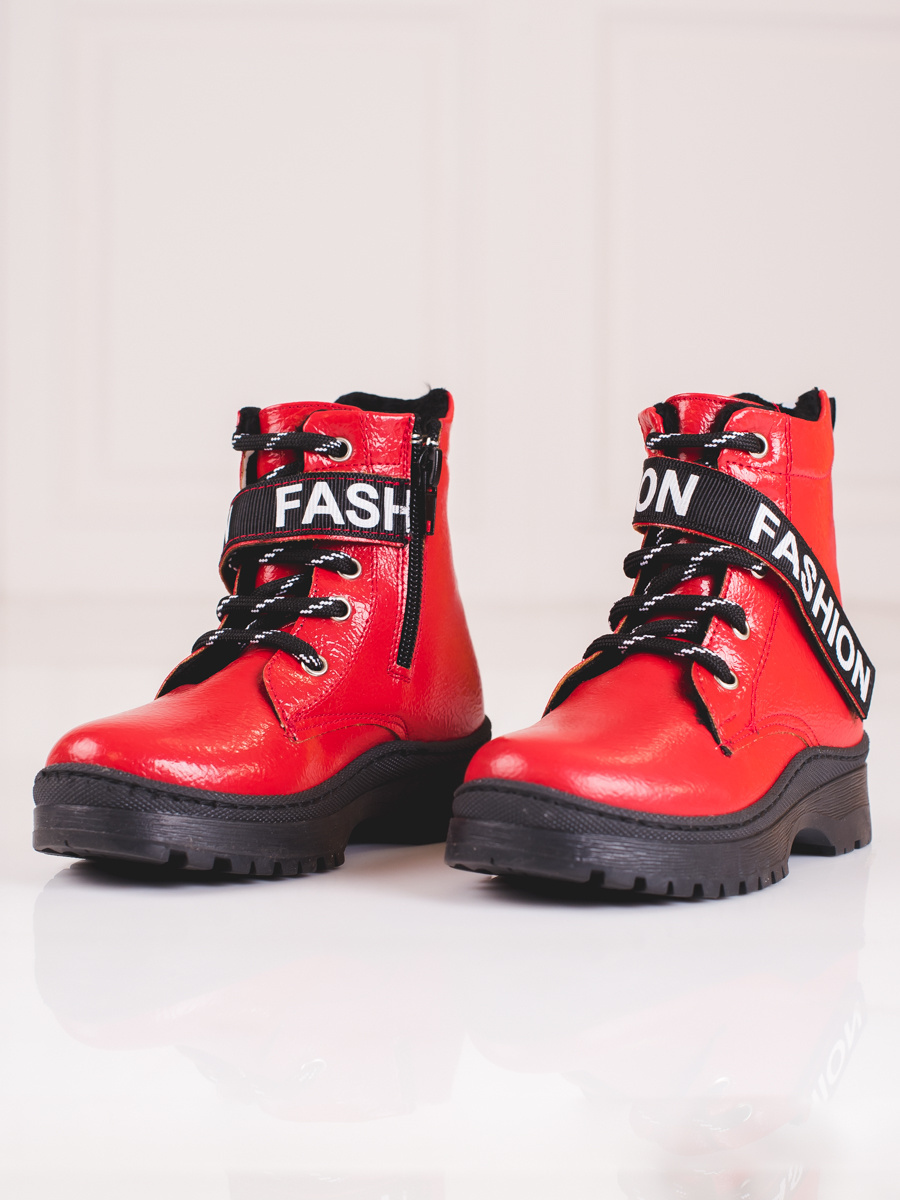 Botki dziewczęce Potocki fashion w ognistym odcieniu czerwieni