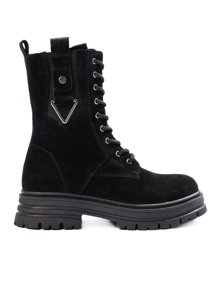 Wysokie traperki damskie ze skóry naturalnej czarne