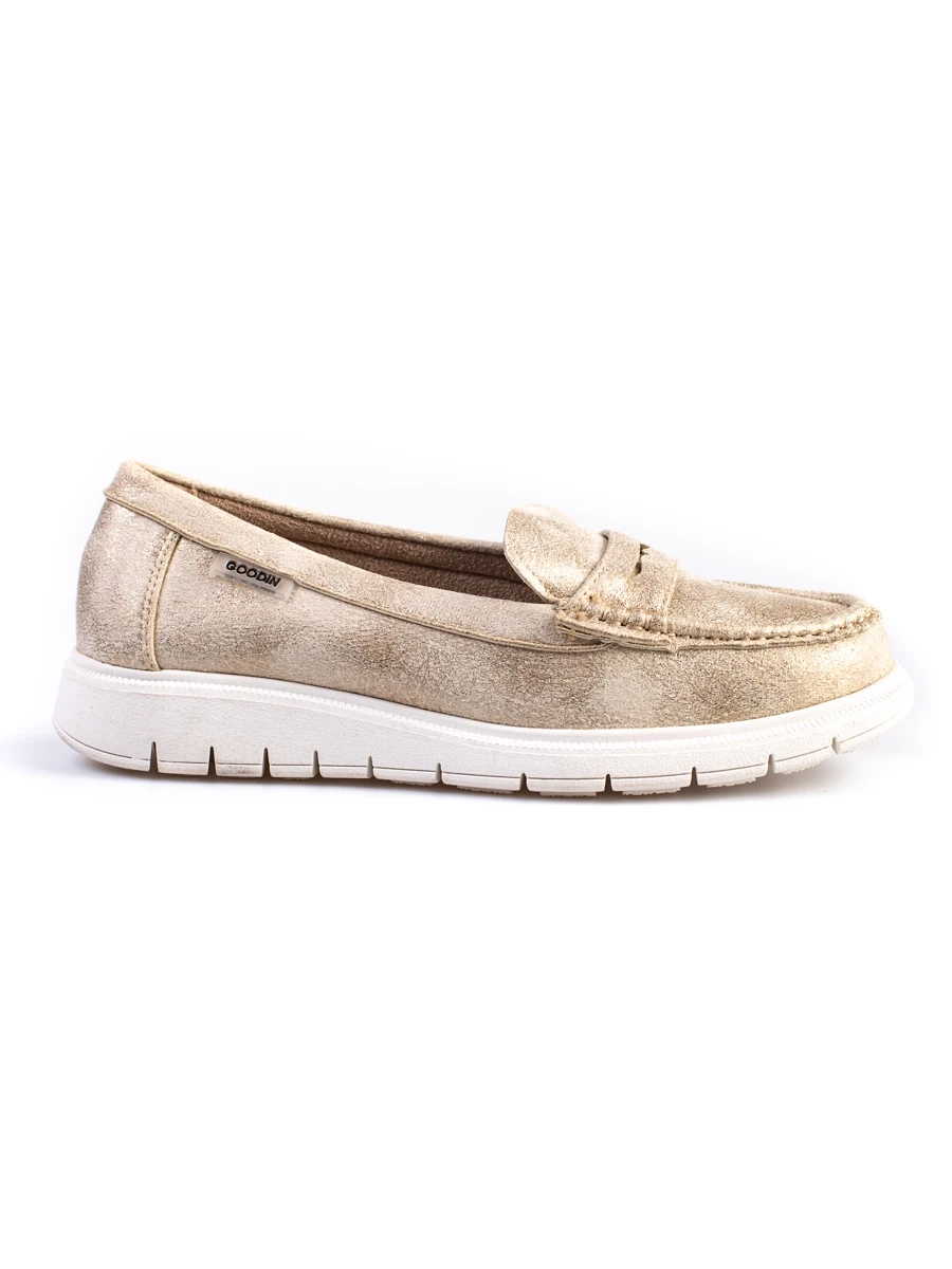 Pozwól sobie na odrobinę luksusu w codziennym obuwiu. Nasze złote mokasyny damskie z elastyczną podeszwą to synonim elegancji i komfortu. Idealnie sprawdzą się zarówno podczas spaceru, jak i na spotkaniu ze znajomymi. Złoty kolor dodaje im blasku i podkreśla indywidualny styl każdej kobiety.