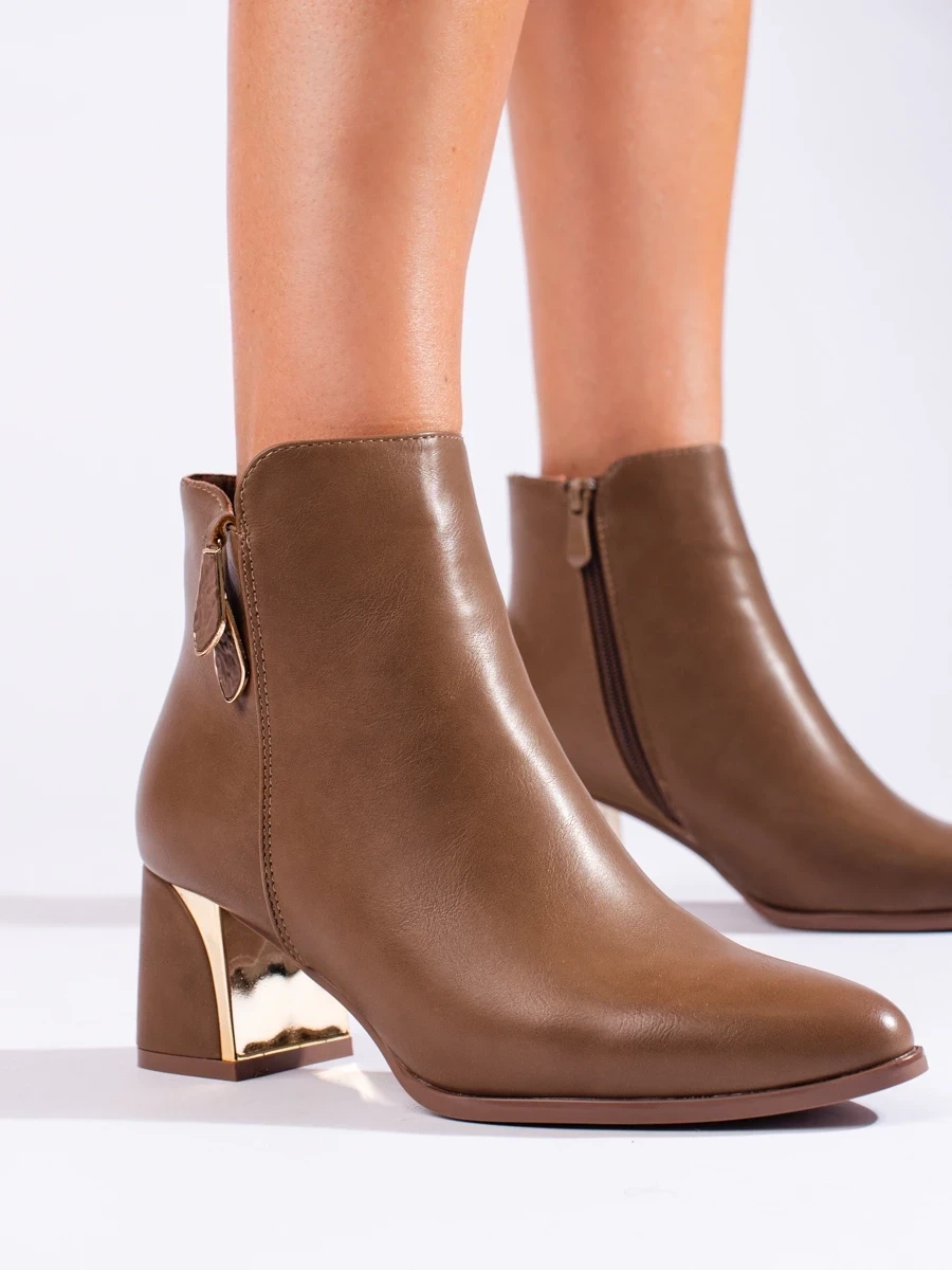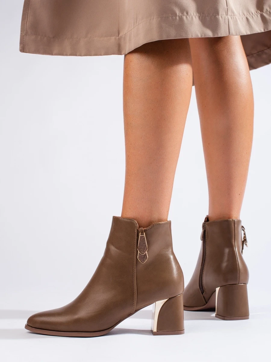 Brązowe damskie botki na słupku - elegancja na co dzień