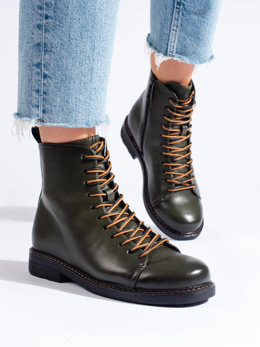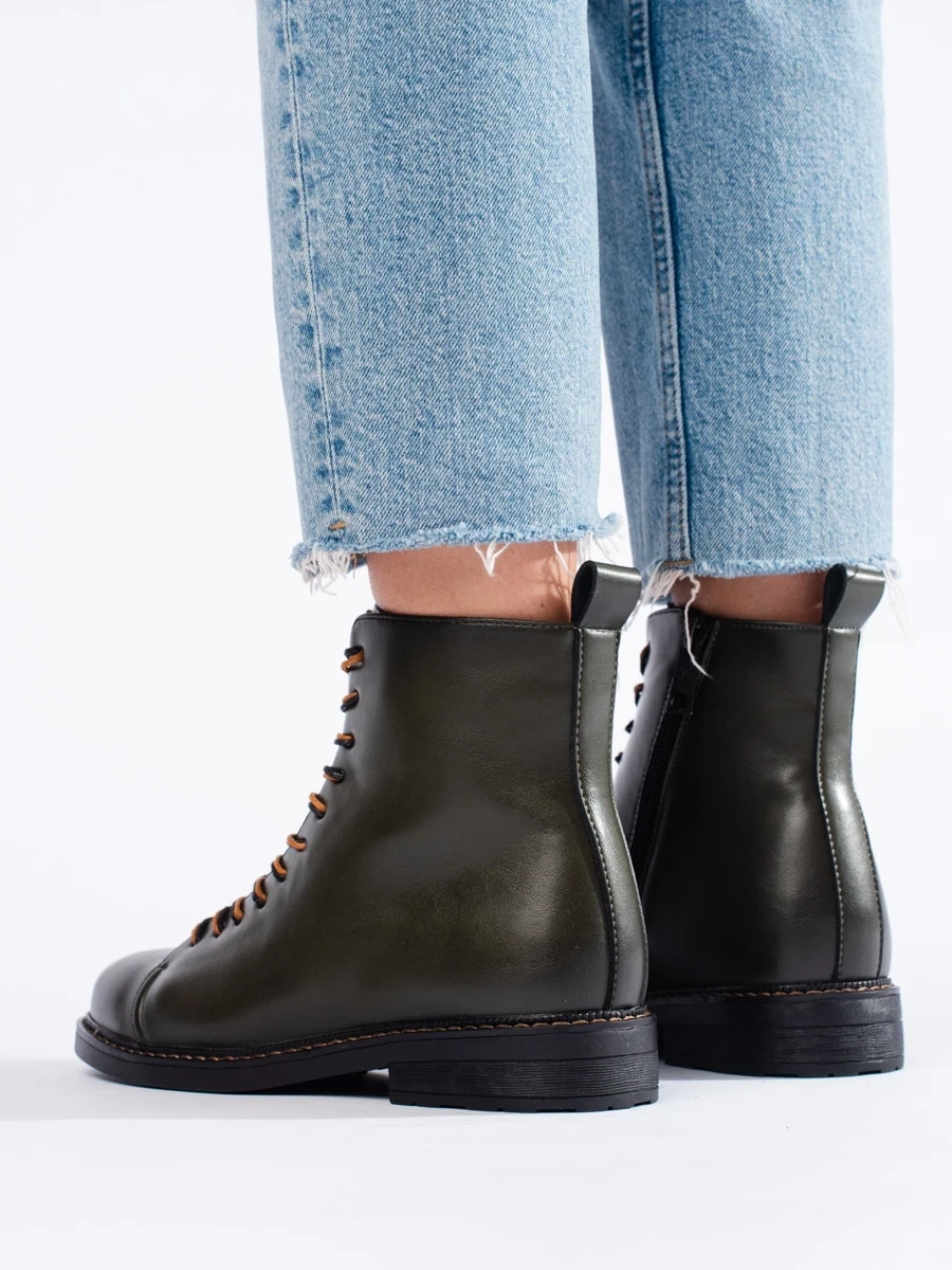 Wiązane ciemnozielone workery damskie Vinceza - elegancja spotyka wygodę