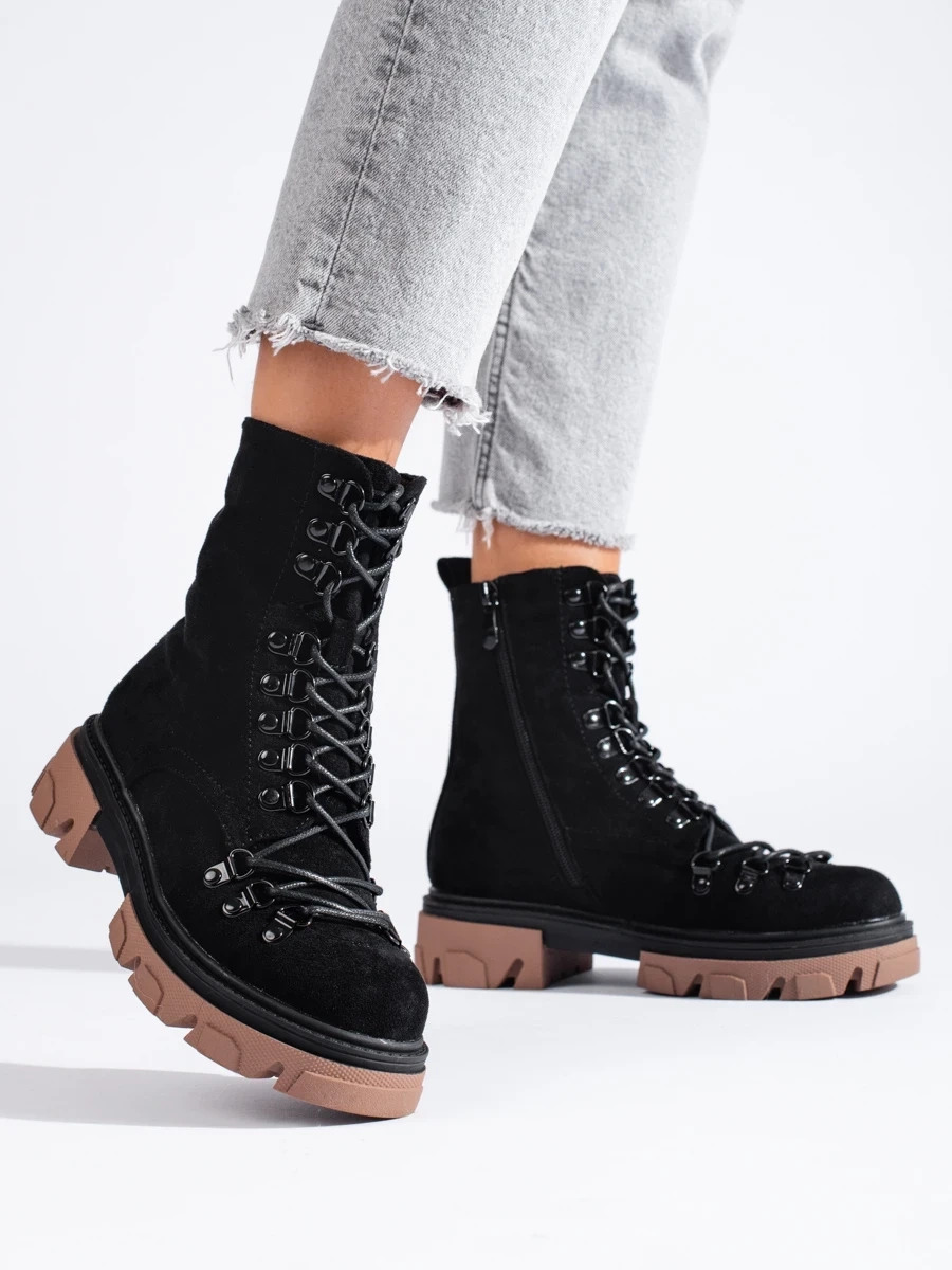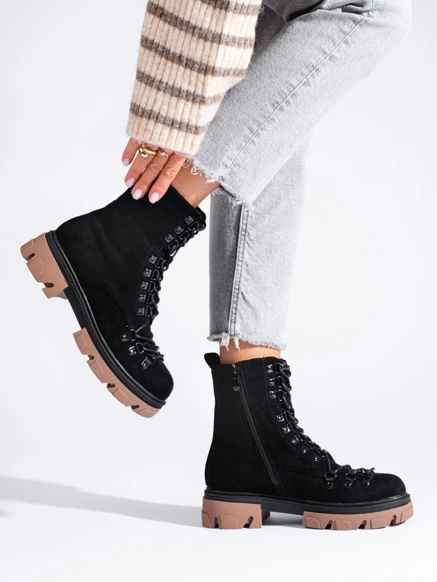 Zamszowe wiązane workery czarne Vinceza