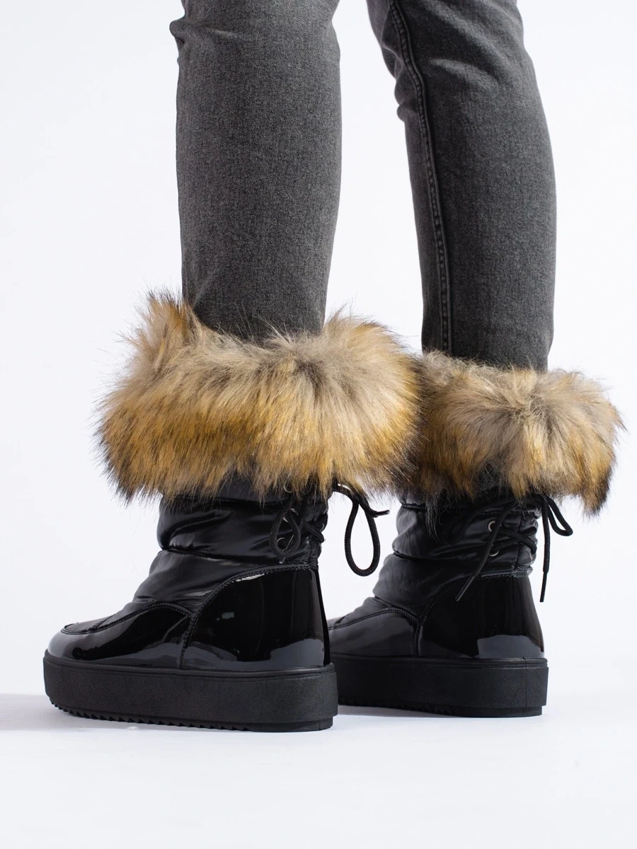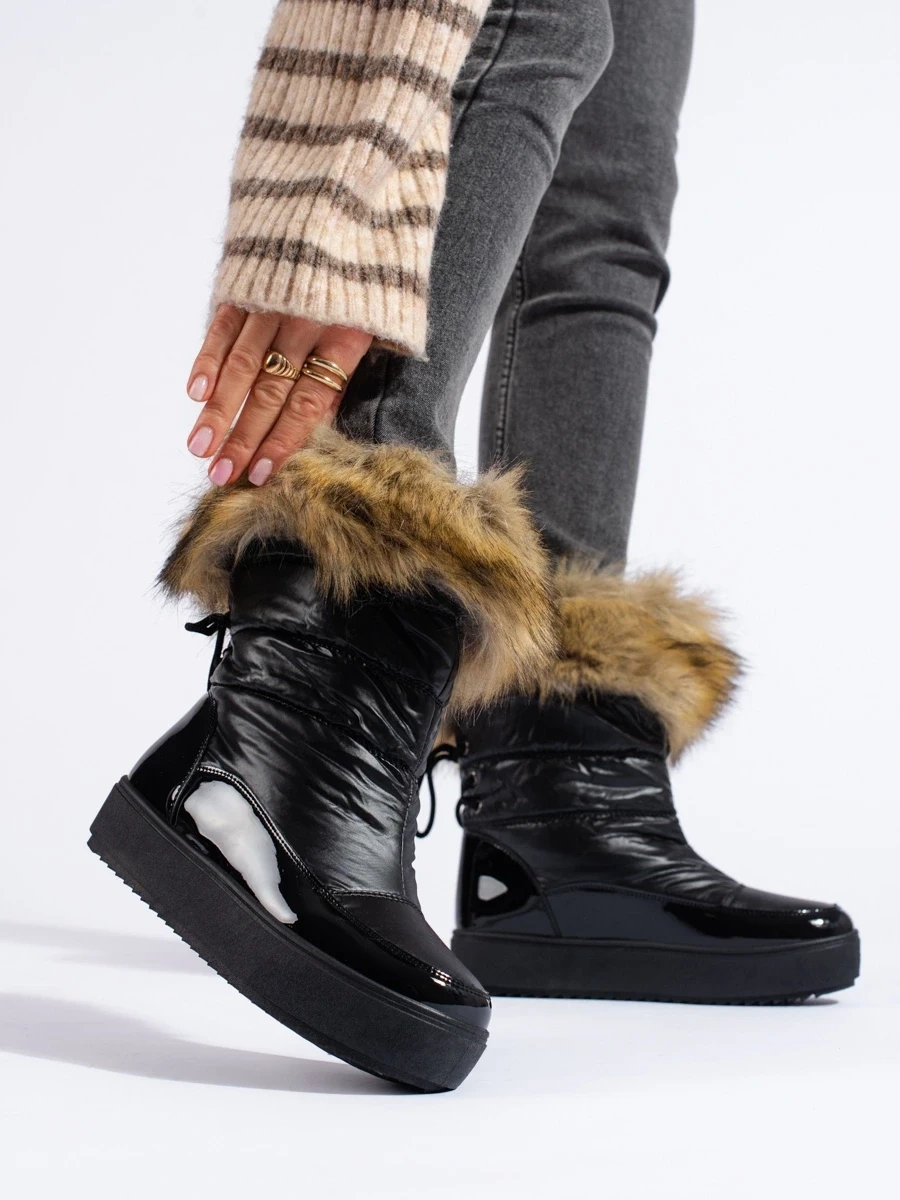 Damskie czarne śniegowce z futerkiem