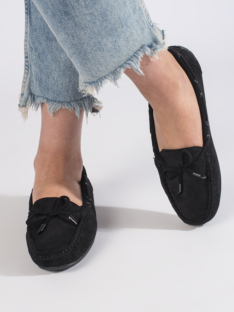 Wygodne zamszowe mokasyny damskie czarne