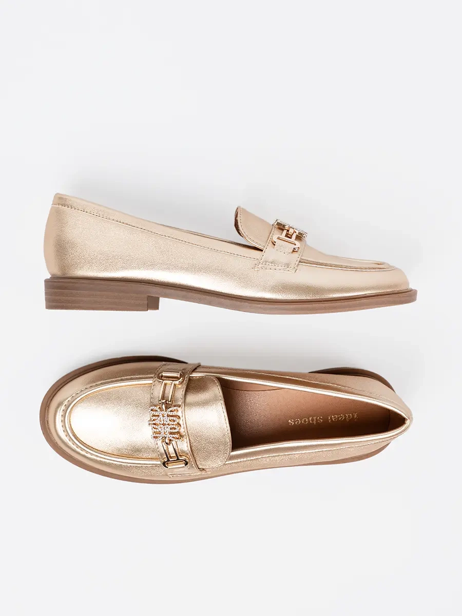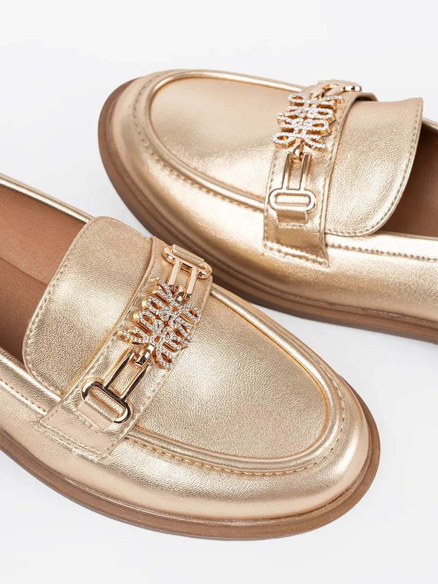 Złote stylowe mokasyny damskie