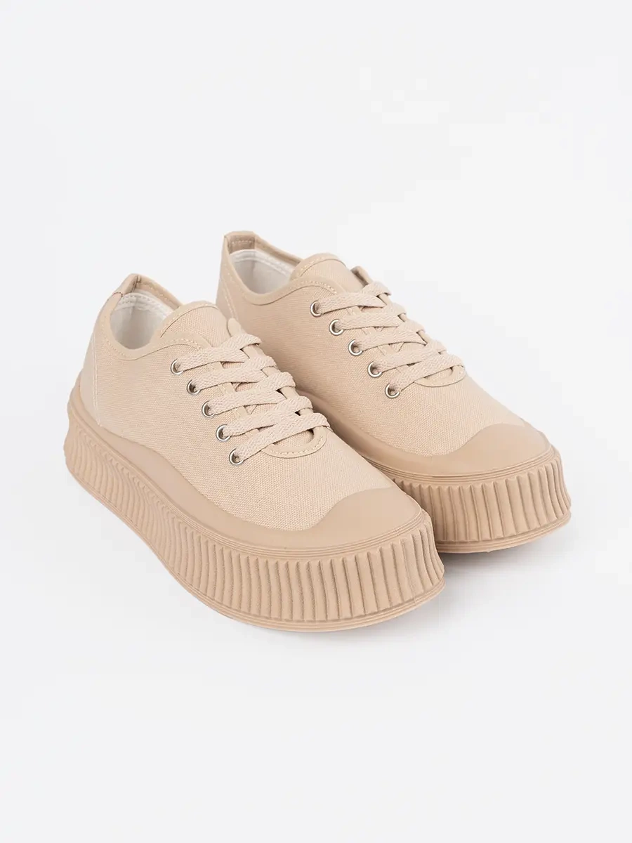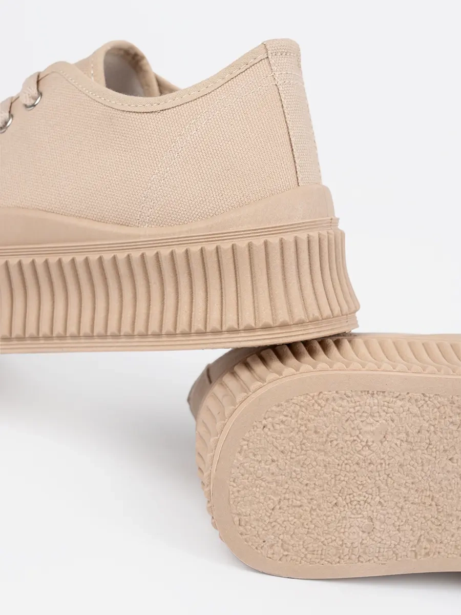 Sznurowane trampki damskie na platformie beżowe