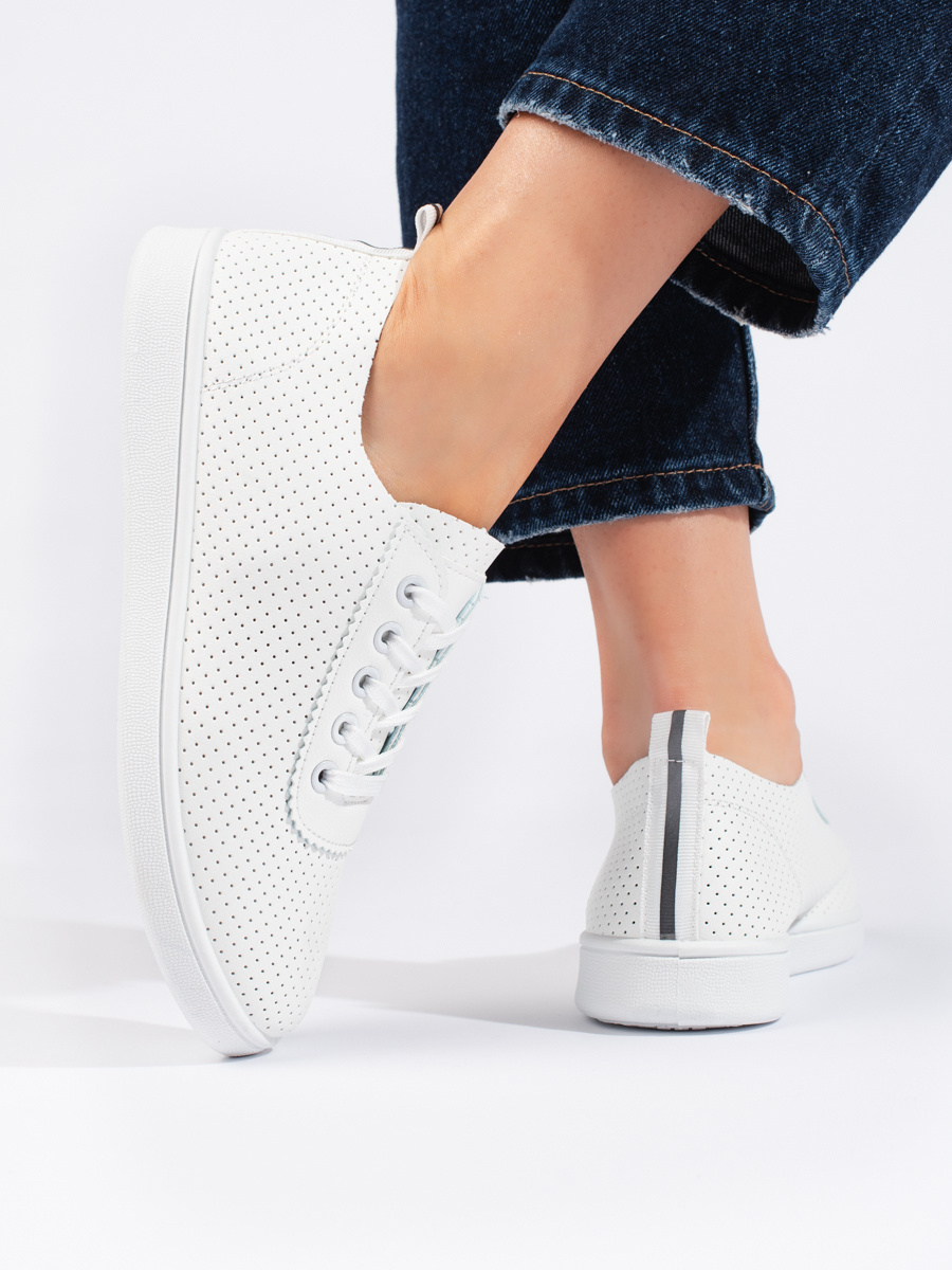 Białe sznurowane półbuty damskie