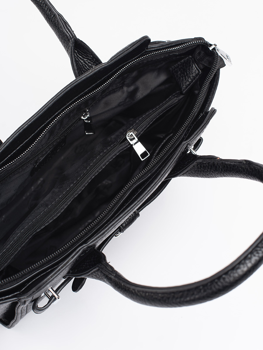 Prezentujemy Państwu naszą najnowszą perłę wśród torebek damskich - czarną torebkę z subtelnie błyszczącymi srebrnymi elementami. Ten elegancki dodatek stanie się niezastąpionym elementem każdej kobiecej garderoby, nadając stylizacji wyjątkowego charakteru.