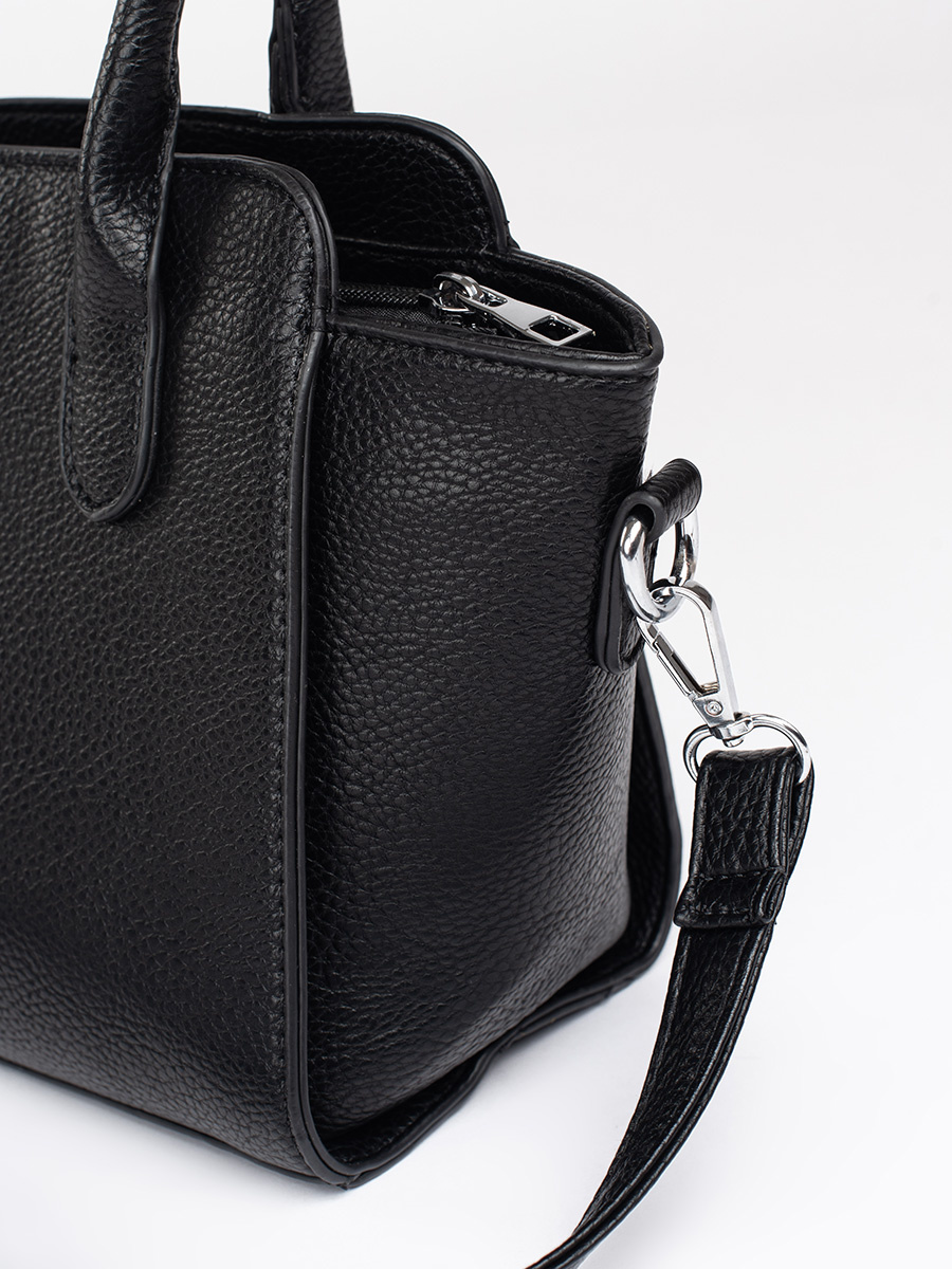 Ta czarna torebka damska została zaprojektowana z myślą o kobietach ceniących sobie elegancję i wygodę. Wykonana z wysokiej jakości skóry ekologicznej, jest nie tylko stylowa, ale również trwała i praktyczna. Srebrne elementy dodają jej elegancji, a odpinany pasek pozwala na noszenie torebki na różne sposoby, dostosowując się do Twoich potrzeb i stylu.