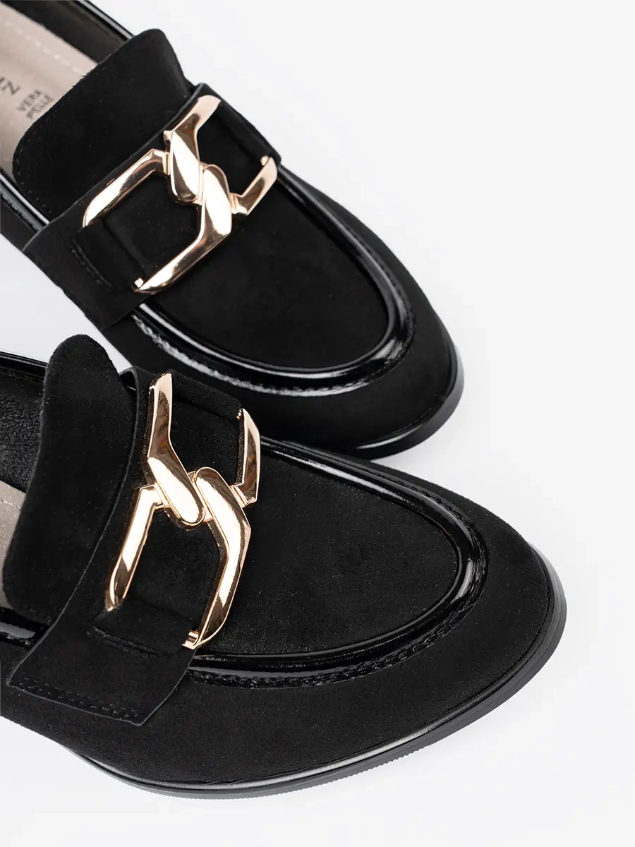 Nasze zamszowe damskie półbuty zostały stworzone z myślą o kobietach ceniących luksus i komfort. Wykonane z wysokiej jakości skóry ekologicznej zamszowej, zapewniają nie tylko oszałamiający wygląd, ale także trwałość na lata. Czarny kolor dodaje charakteru i pasuje zarówno do eleganckich, jak i casualowych stylizacji.