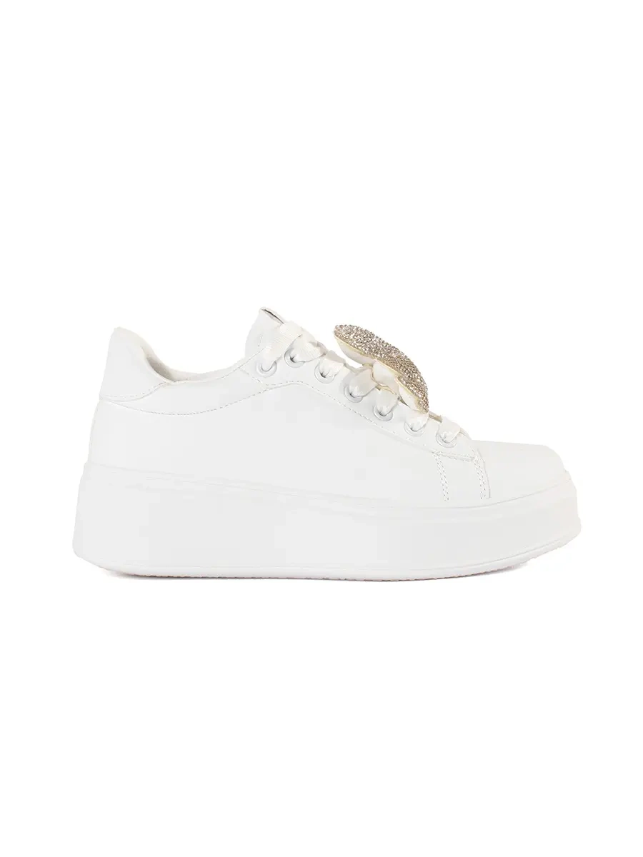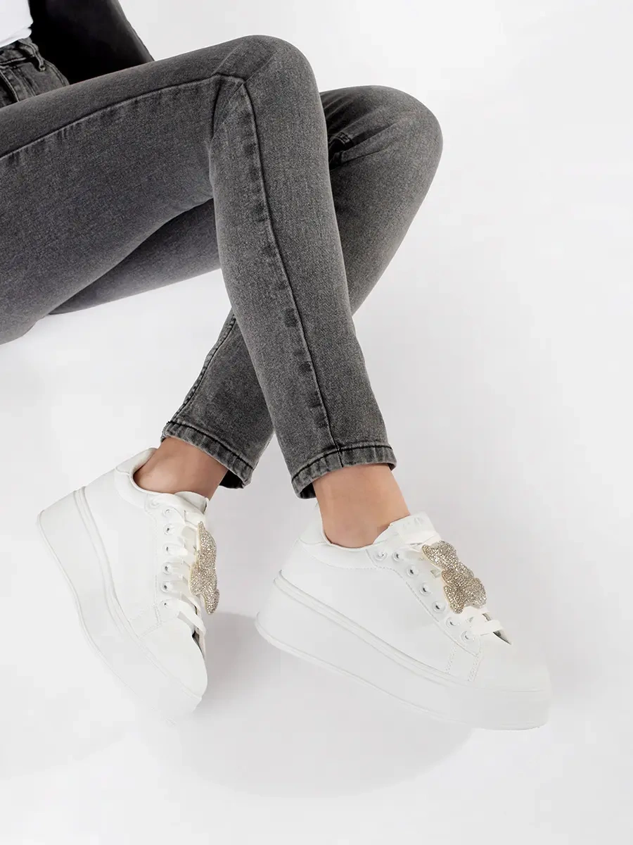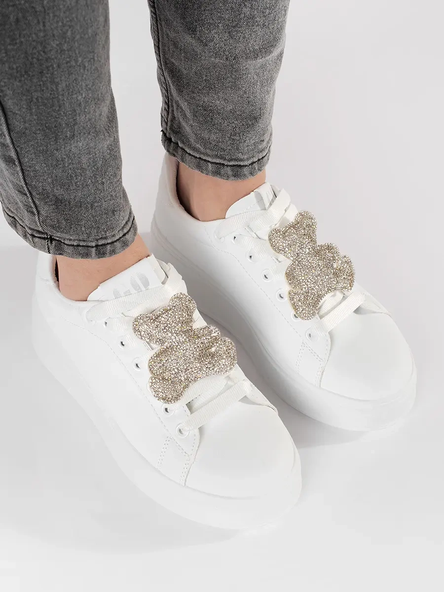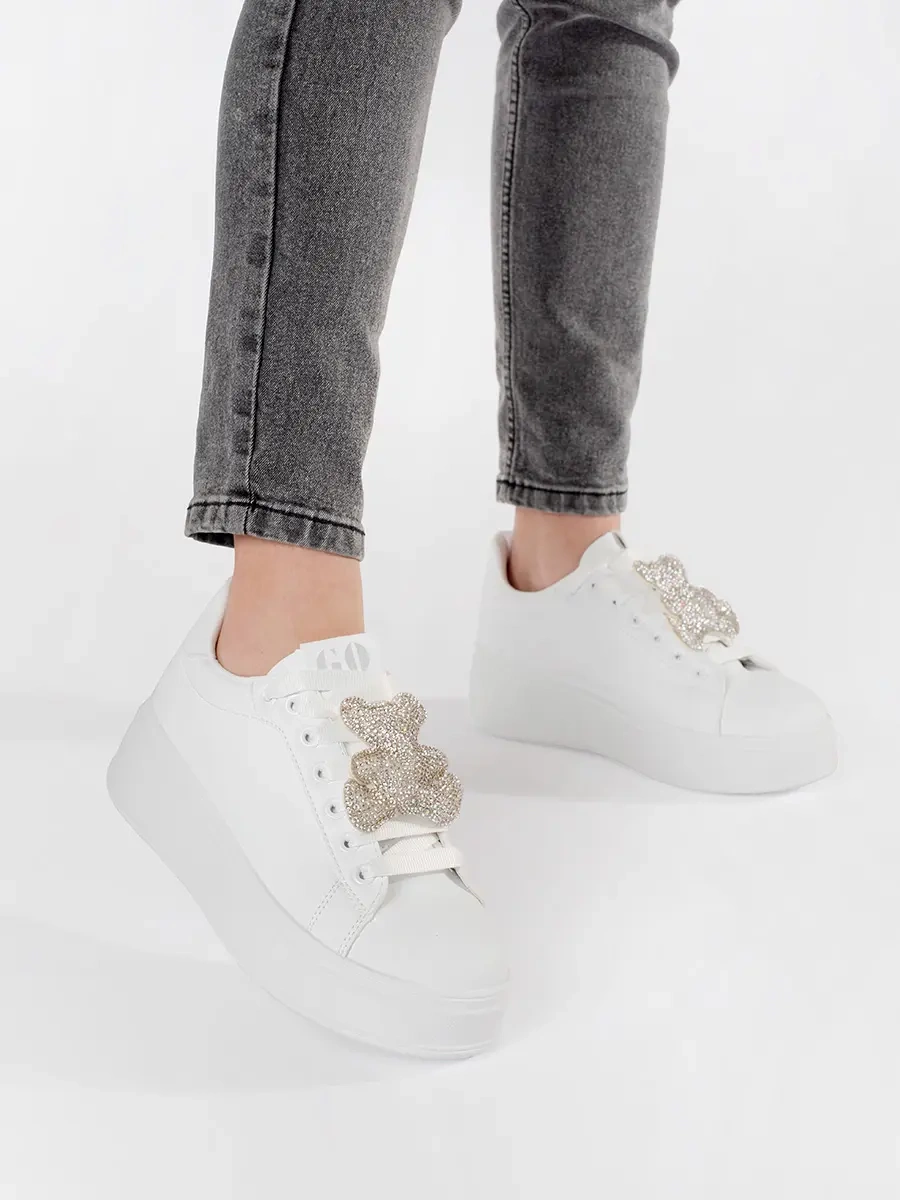 Opinie o Białe sneakersy na platformie ozdobione misiem