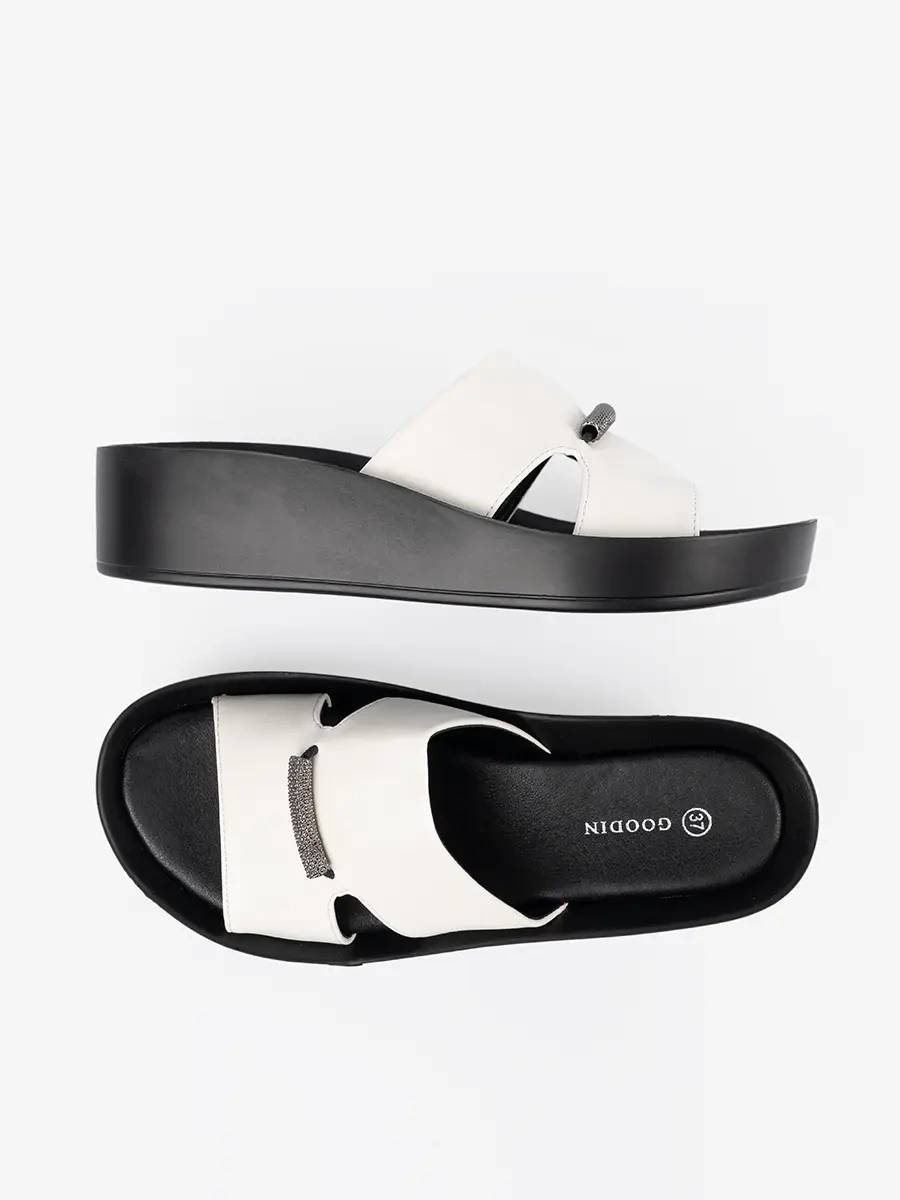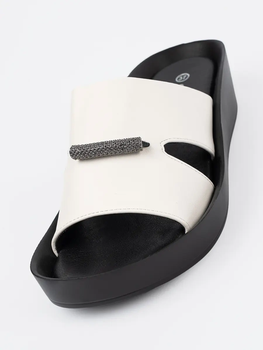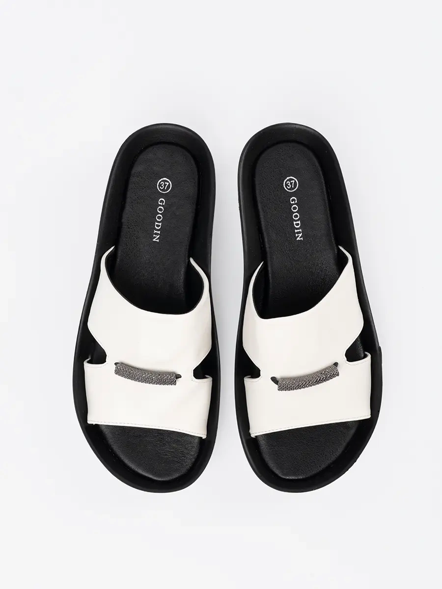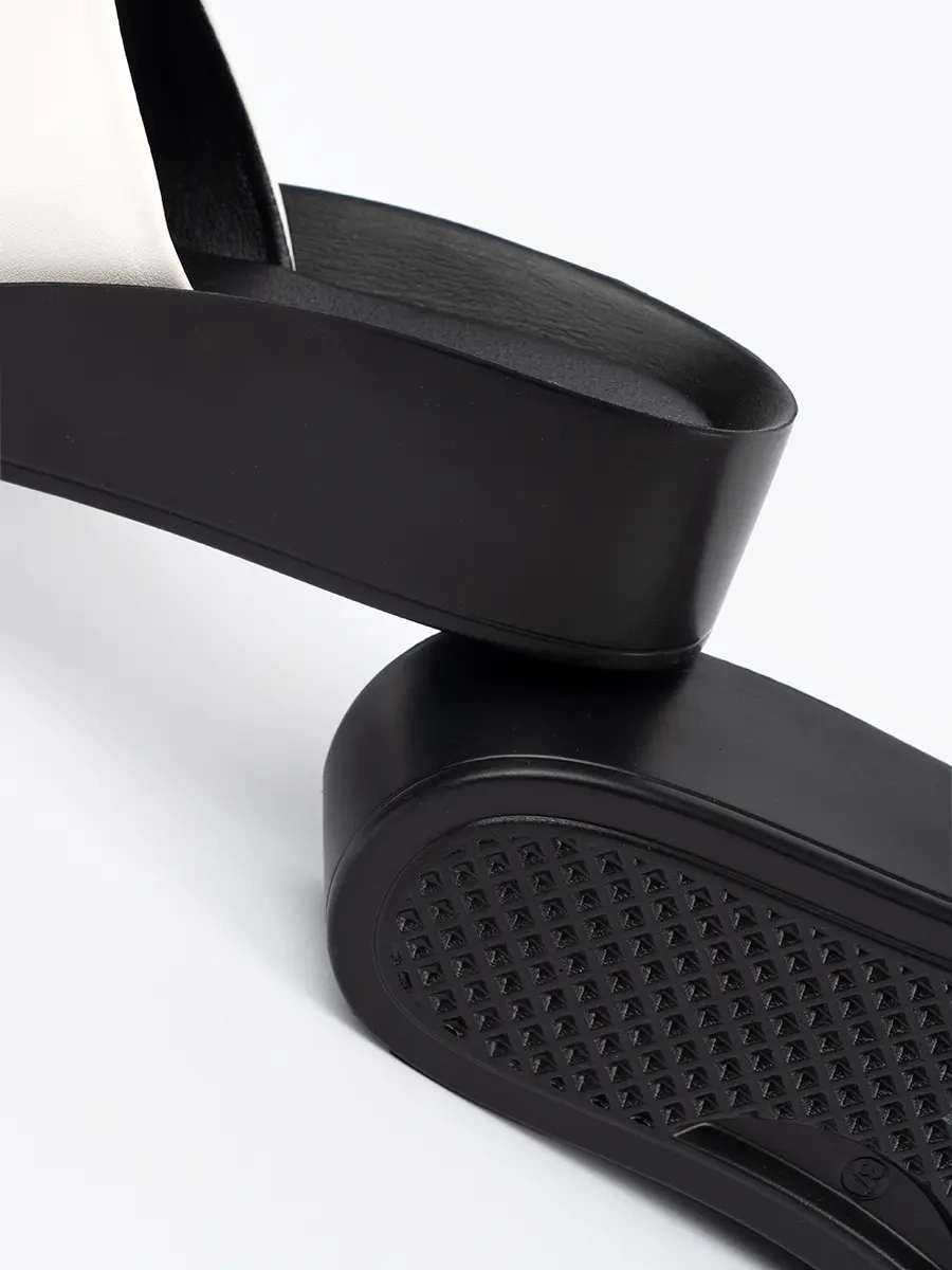 Nasze klapki zostały stworzone z myślą o kobietach ceniących komfort i elegancję. Wykonane z wysokiej jakości ekologicznej skóry, zapewniają nie tylko oszałamiający wygląd, ale także trwałość i wygodę. Kontrast białego i czarnego dodaje charakteru i pasuje do różnorodnych stylizacji.
