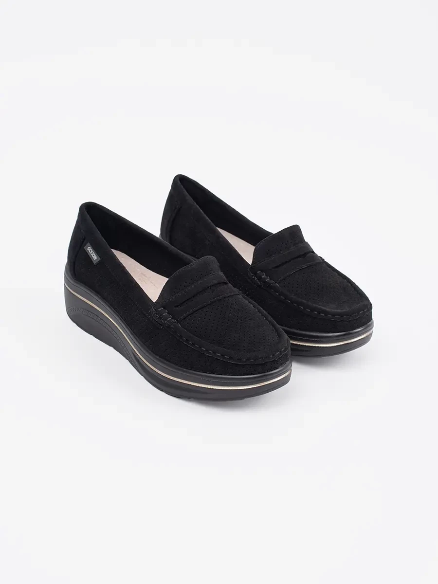 Czarne mokasyny na grubej podeszwie to must-have w szafie każdej modnej kobiety. Doskonale sprawdzą się zarówno w pracy, na zakupach, jak i podczas weekendowych spacerów. Łatwo połączysz je z ulubionymi jeansami, eleganckimi spodniami czy letnią sukienką, tworząc niezapomniane stylizacje na każdą okazję.