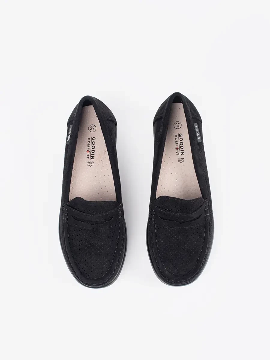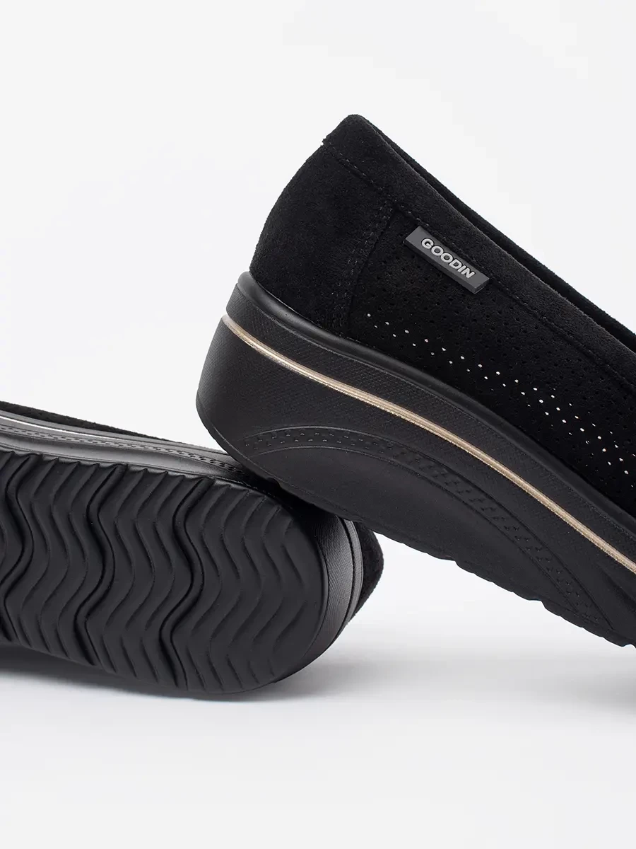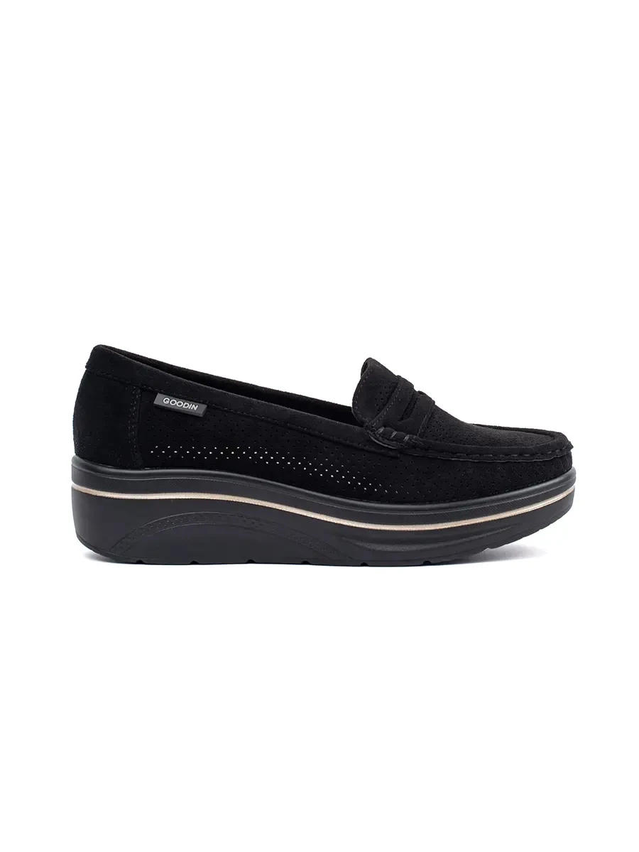 Mimo swojego eleganckiego wyglądu, te mokasyny zostały zaprojektowane z myślą o Twoim komforcie. Gruba podeszwa o wysokości 4,5 cm zapewnia stabilność i amortyzację, a naturalna skóra na wkładce gwarantuje miękkość i wygodę przez cały dzień. Wsuwane zapięcie umożliwia łatwe i szybkie zakładanie butów.