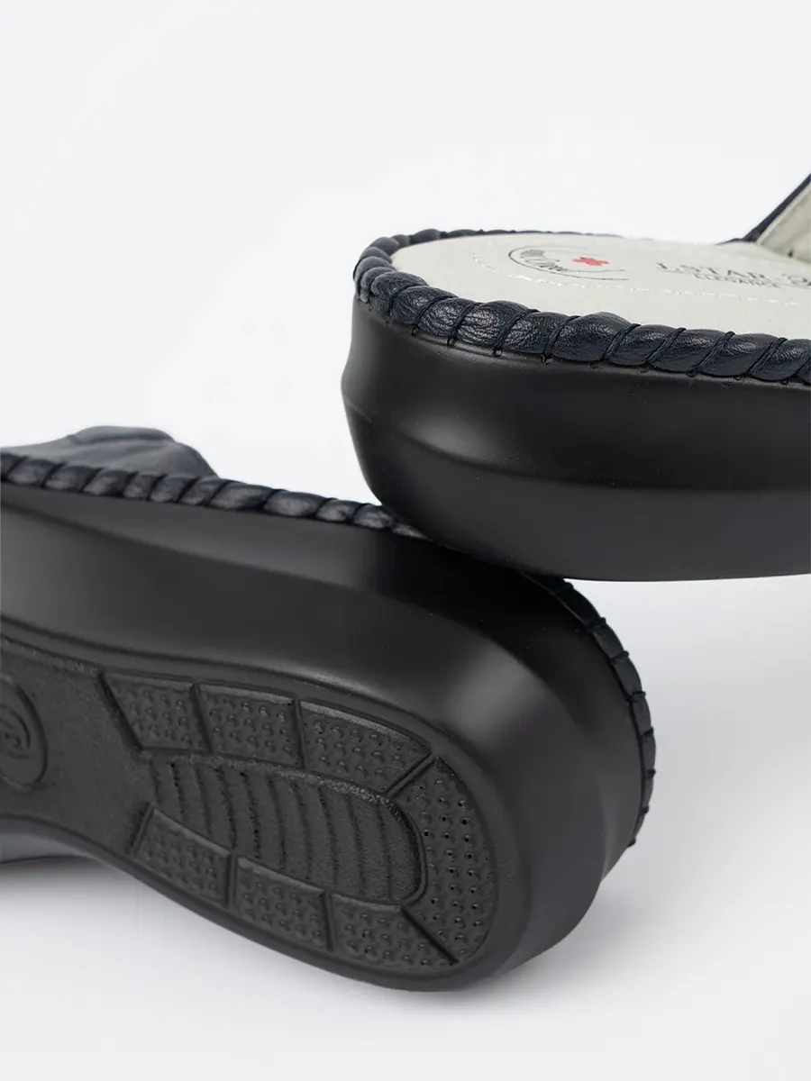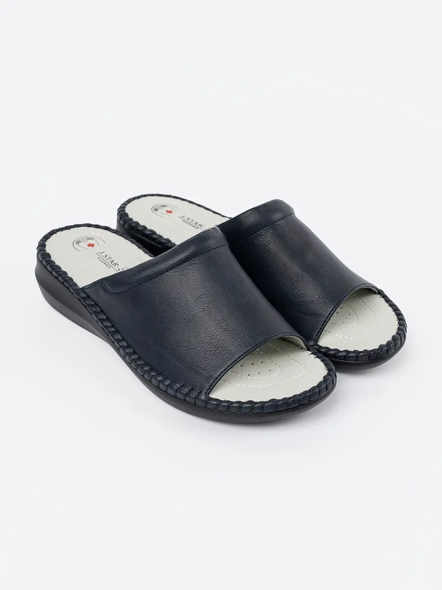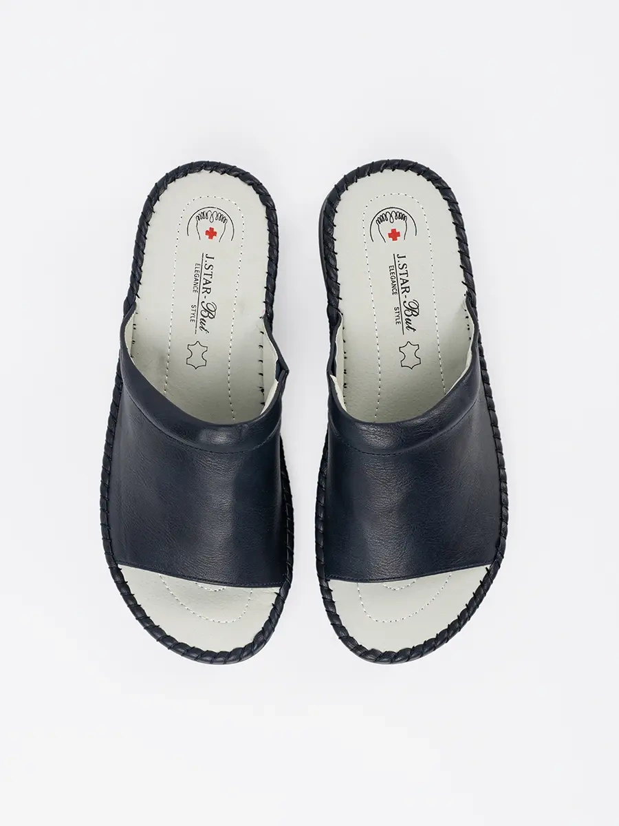 Zapraszamy do odkrycia naszych granatowych damskich klapków ze skórzaną wkładką. To obuwie, które łączy w sobie elegancję, nowoczesność i komfort, stworzone z myślą o kobiecie ceniącej styl i wygodę w każdych okolicznościach.