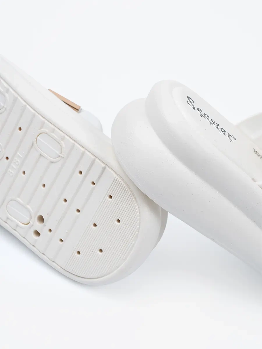Wyróżnij się z tłumu z naszymi białymi klapkami damskimi na platformie z efektownymi złotymi klamrami. Te niezwykłe buty łączą w sobie elegancję i wygodę, dodając blasku każdej codziennej stylizacji.