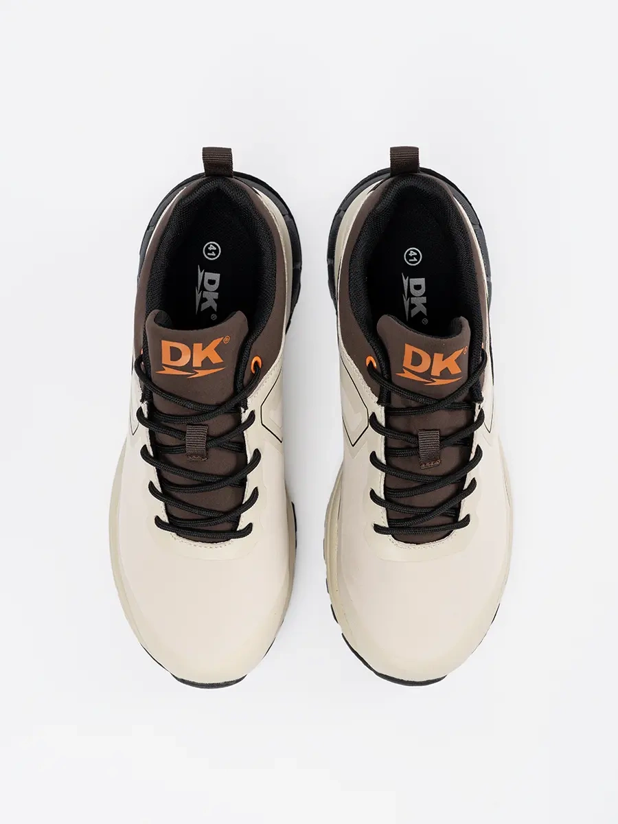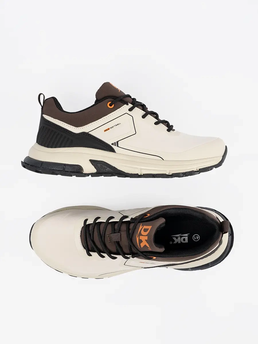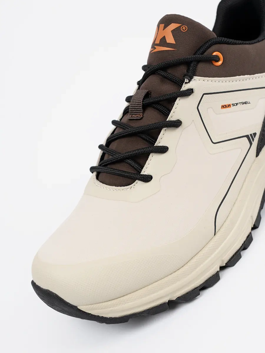 Beżowy kolor tych butów sportowych dodaje im elegancji i uniwersalności, dzięki czemu łatwo dopasujesz je do różnych stylizacji. Sznurowanie gwarantuje idealne dopasowanie do stopy, a podeszwa z bieżnikiem zapewnia bezpieczeństwo i stabilność na różnych powierzchniach.