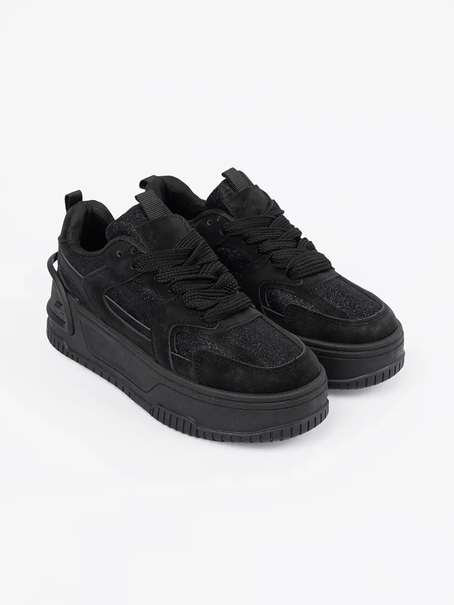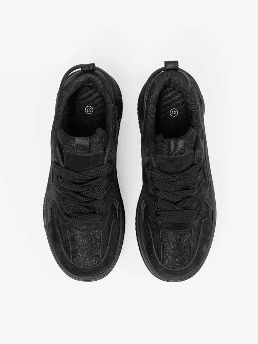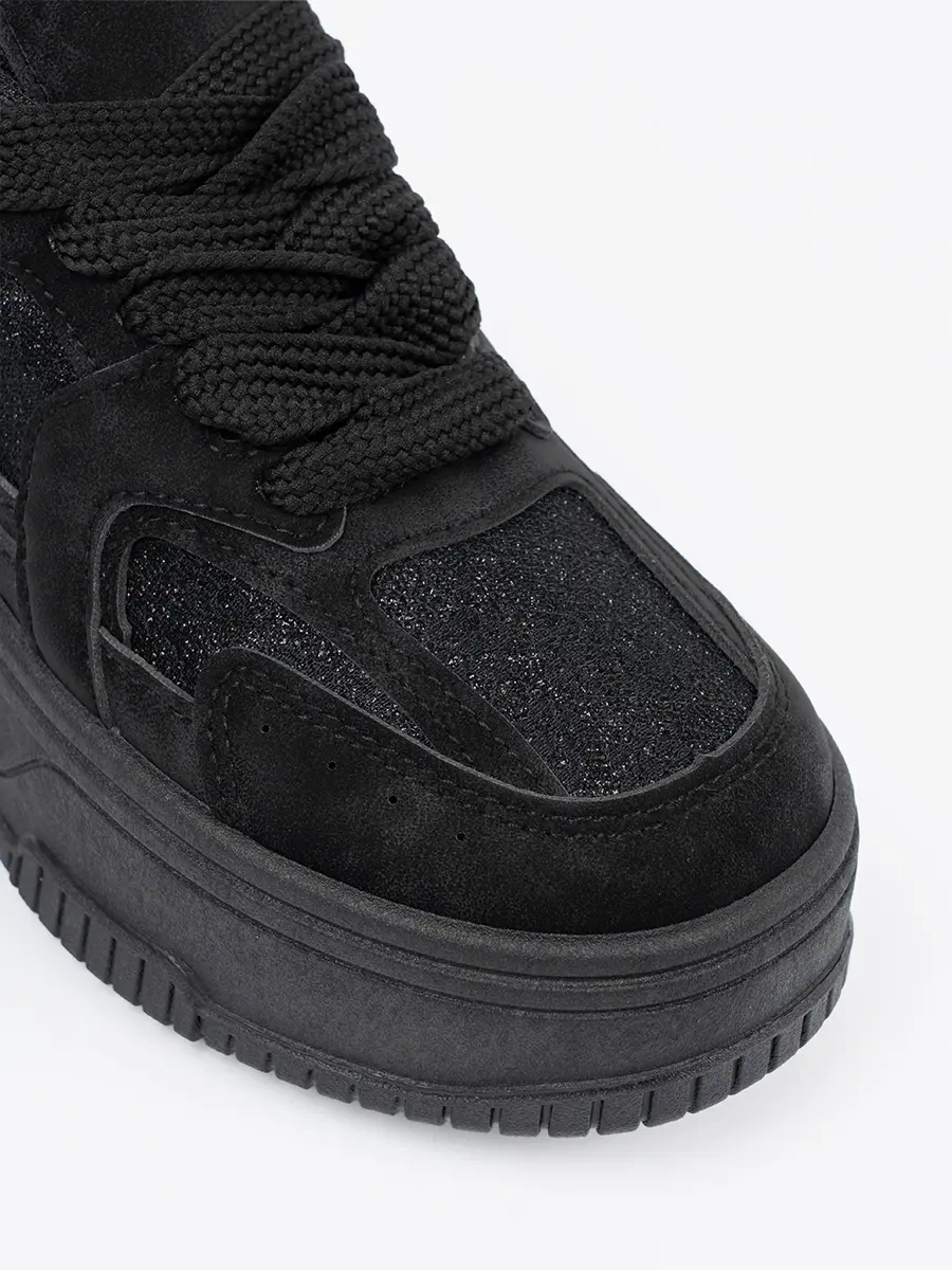 Nasze sneakersy damskie z koronką zostały stworzone z myślą o kobietach, które cenią sobie zarówno styl, jak i komfort. Wykonane z połączenia imitacji zamszu i tkaniny, z delikatnymi koronkowymi wstawkami, przyciągają wzrok i dodają charakteru każdej stylizacji. Czarny kolor podkreśla ich uniwersalność i sprawia, że pasują do większości ubrań.