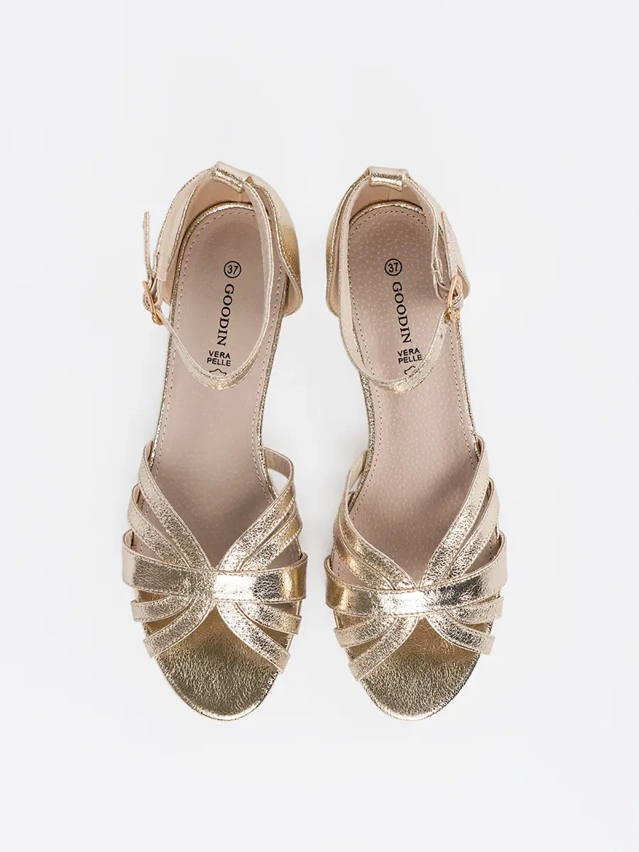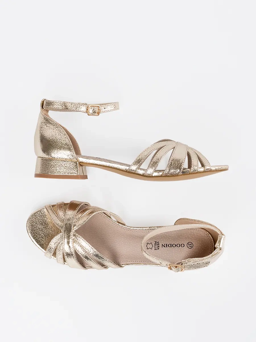 Eleganckie złote sandały na niskim obcasie - Letnie nowości dla stylowej kobiety