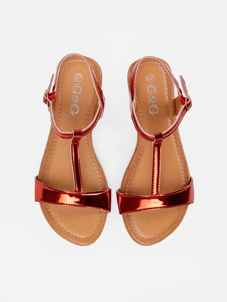Opinie o Czerwone sandały damskie na płaskiej podeszwie