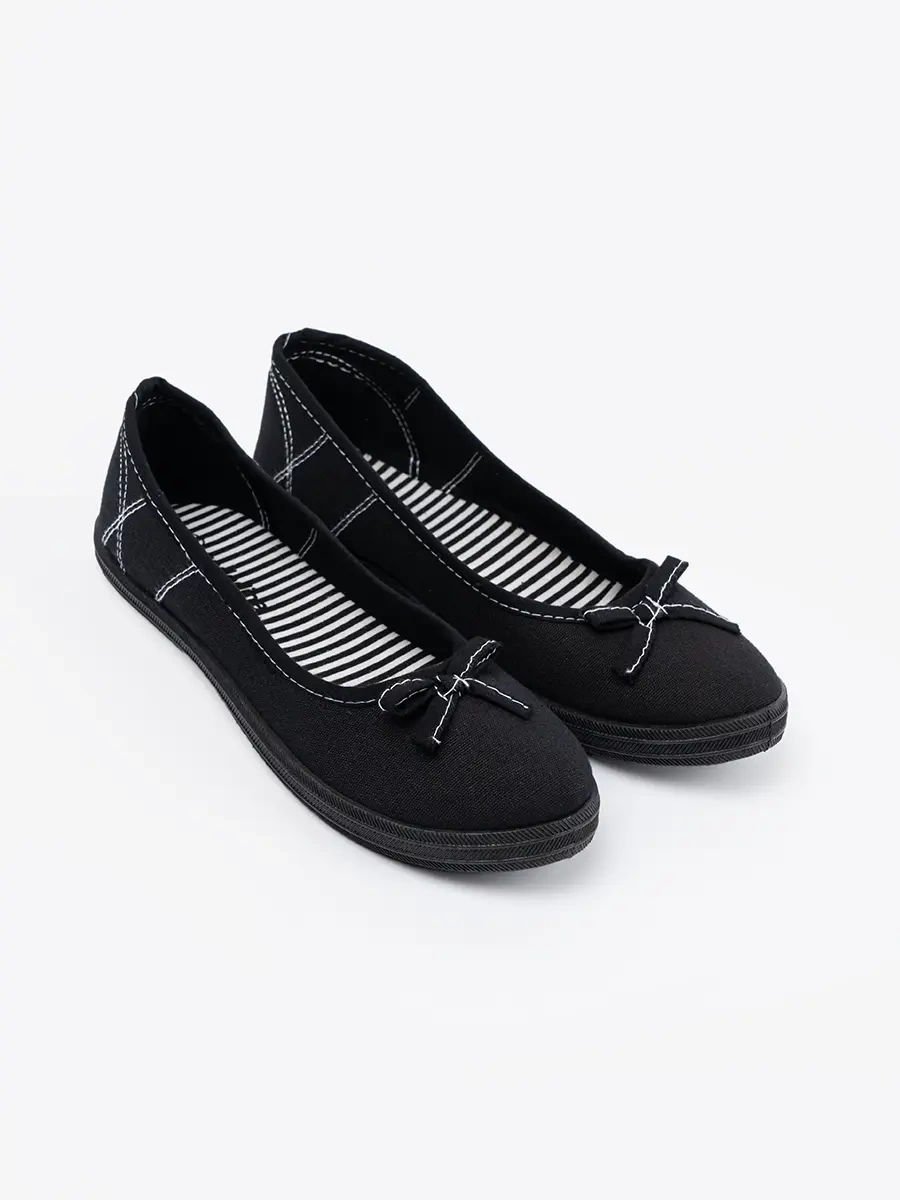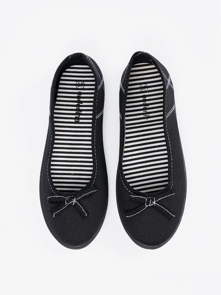 Nasze baleriny to połączenie klasycznego designu z nowoczesnymi trendami. Czarne, tekstylne baleriny z kokardką to must-have w szafie każdej kobiety. Bez obcasa, są niezwykle wygodne i pozwalają na swobodę ruchów przez cały dzień. Dzięki uniwersalnemu kolorowi, łatwo dopasujesz je do każdej stylizacji.