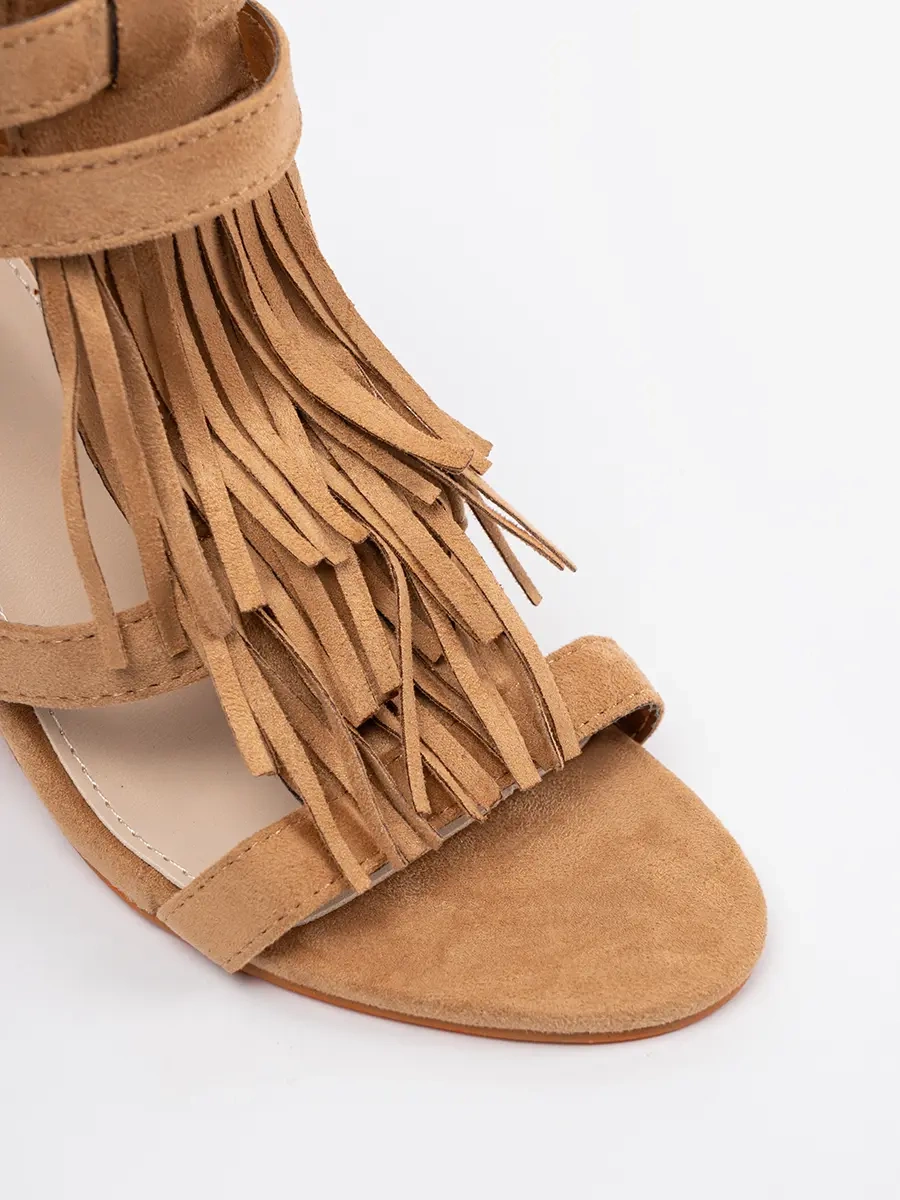 Brązowe sandały na koturnie z frędzlami – elegancja i komfort na co dzień