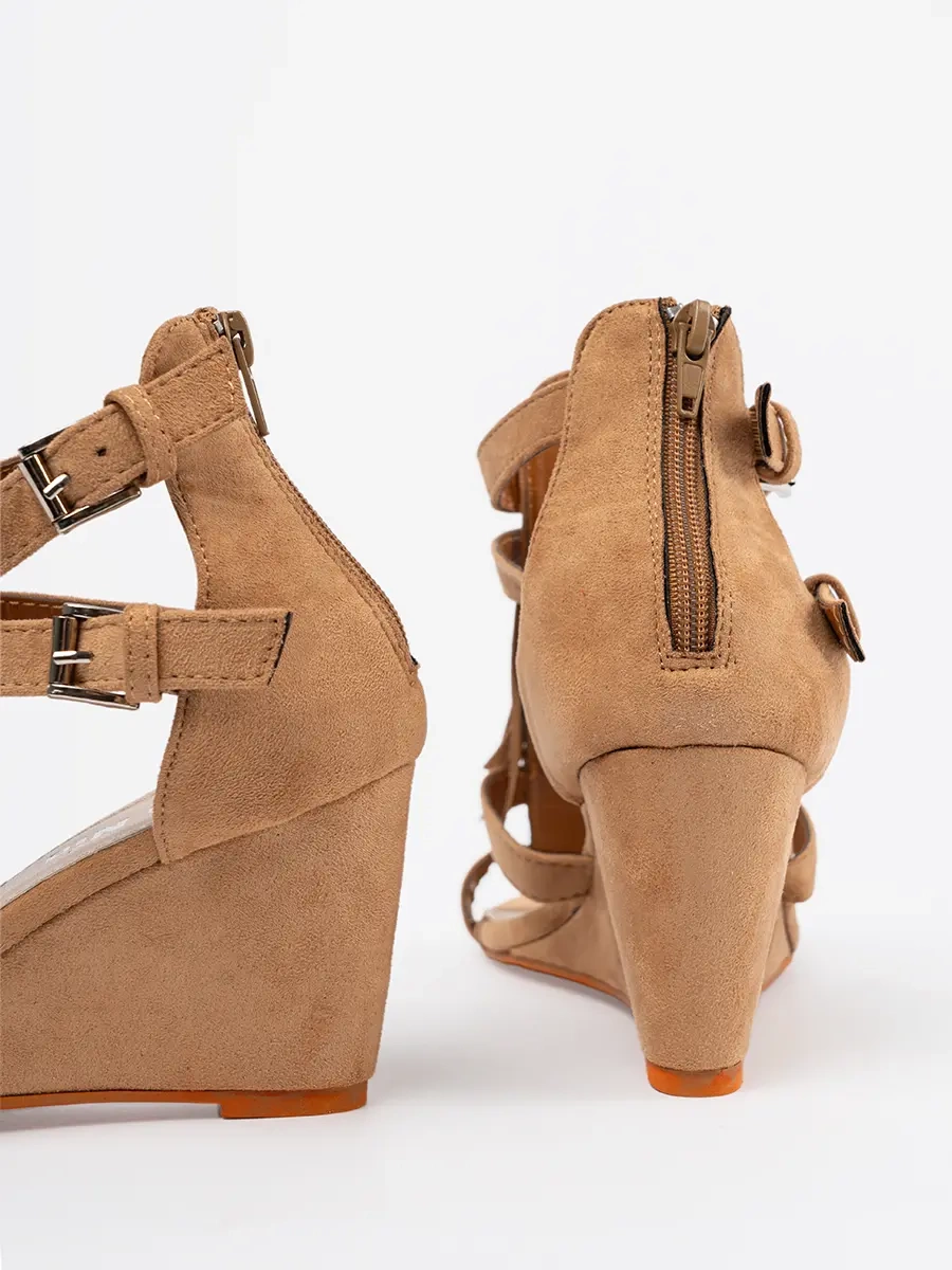Nasze brązowe sandały na koturnie zostały zaprojektowane z myślą o kobietach ceniących elegancję i komfort. Wykonane z wysokiej jakości ekologicznego zamszu, zapewniają nie tylko oszałamiający wygląd, ale także trwałość na lata. Ciepły, brązowy odcień dodaje charakteru i pasuje zarówno do eleganckich, jak i casualowych stylizacji.