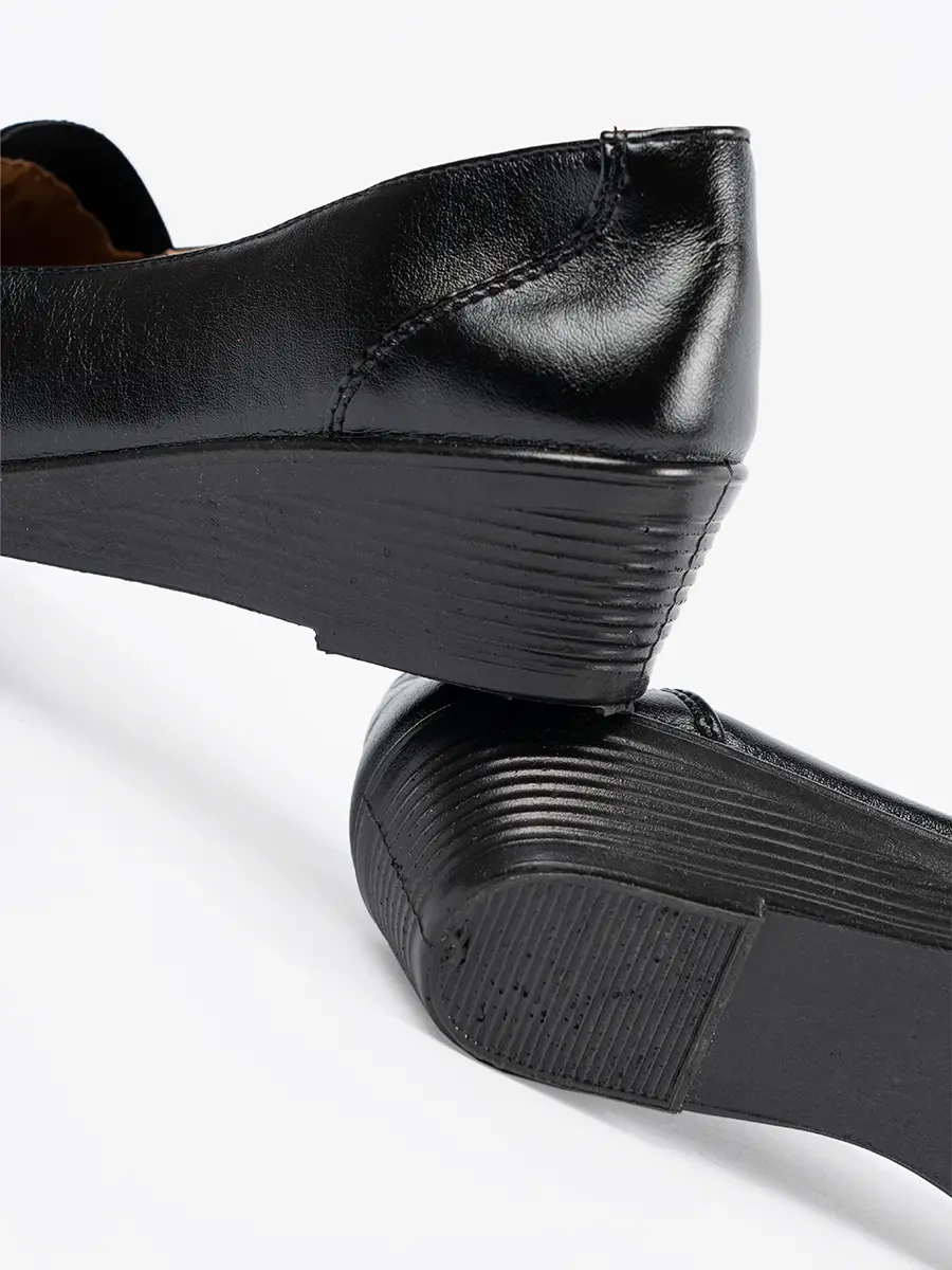 Zaprezentuj swoją stylową stronę z naszymi czarnymi półbutami na koturnie. Łącząc elegancję z wygodą, te buty są doskonałym dodatkiem do każdej kobiecej garderoby, zapewniając wyjątkowy wygląd, który nie idzie na kompromis z komfortem.