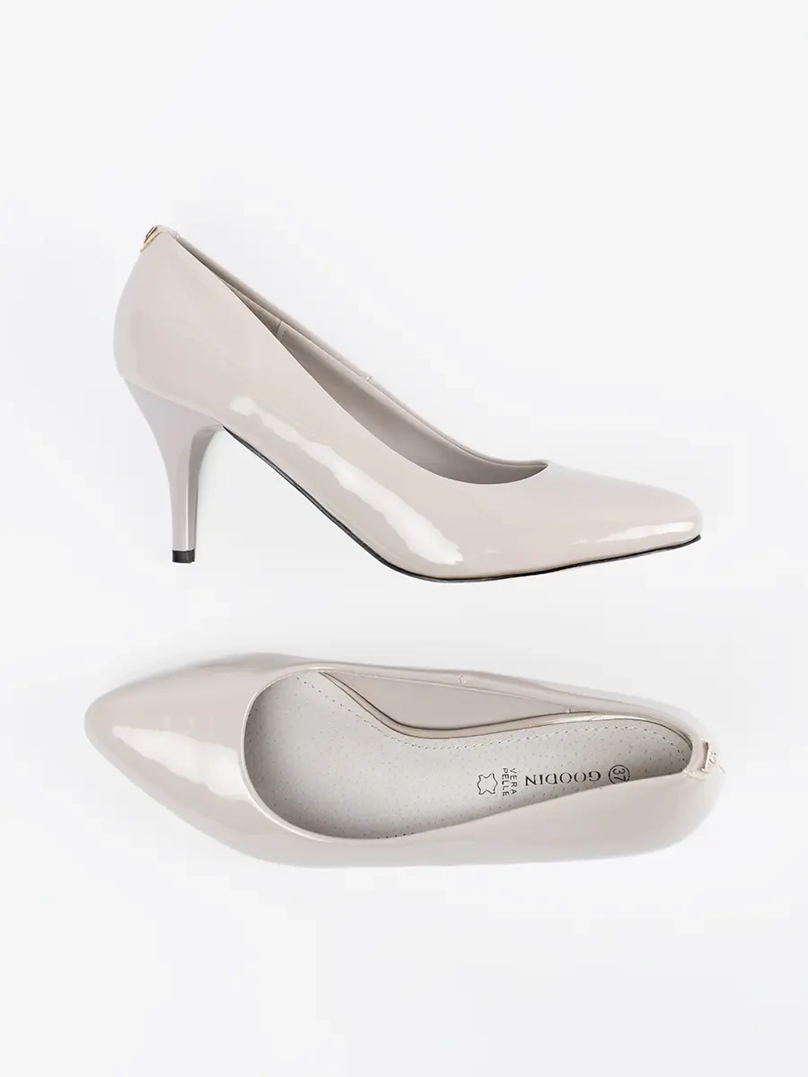 Nasze jasnoszare szpilki zostały stworzone z myślą o kobietach ceniących komfort i klasę. Wykonane z wysokiej jakości ekologicznej skóry lakierowanej, zapewniają nie tylko wyjątkowy wygląd, ale także trwałość na lata. Delikatny, jasnoszary odcień dodaje charakteru i pasuje zarówno do eleganckich, jak i casualowych stylizacji.