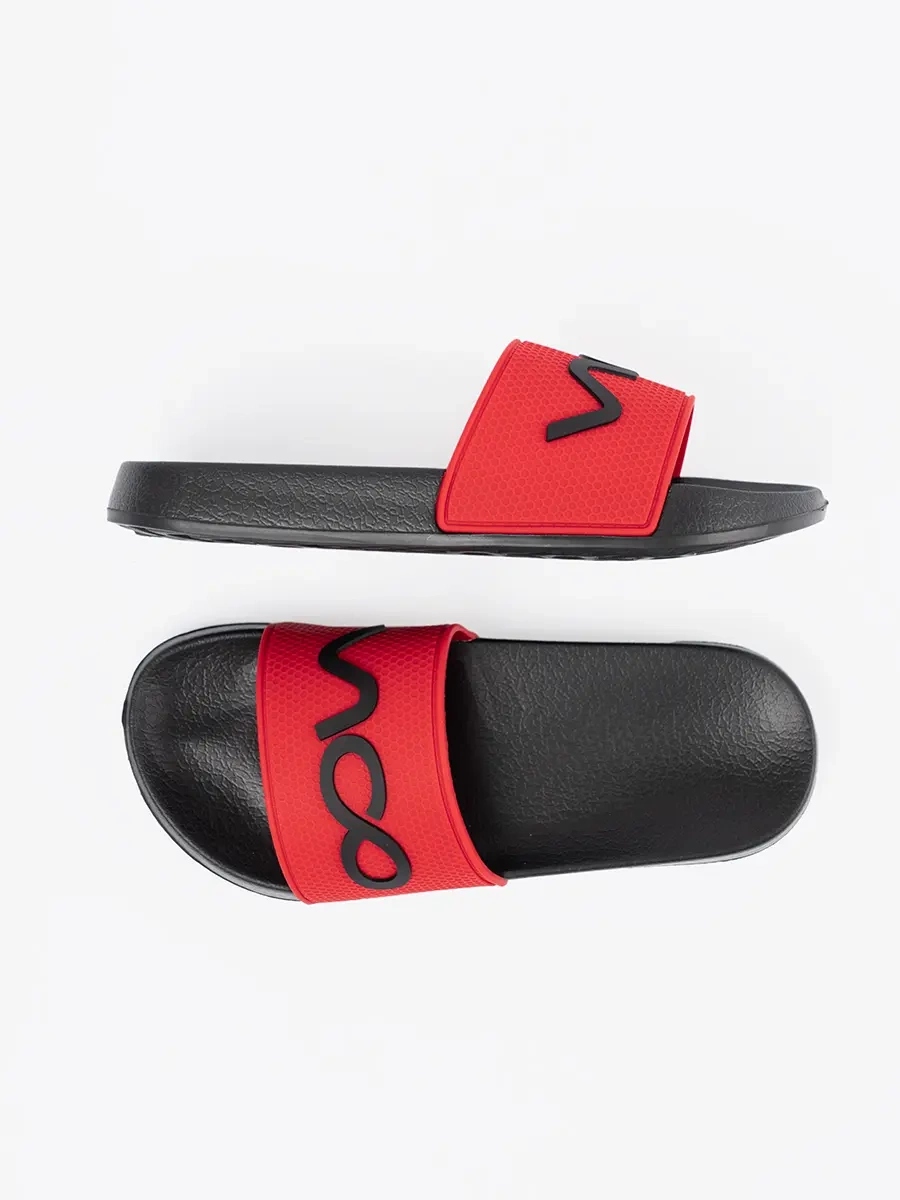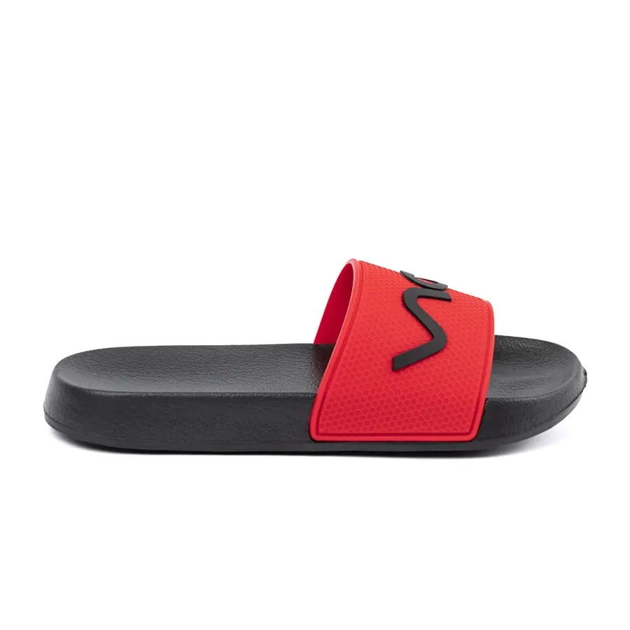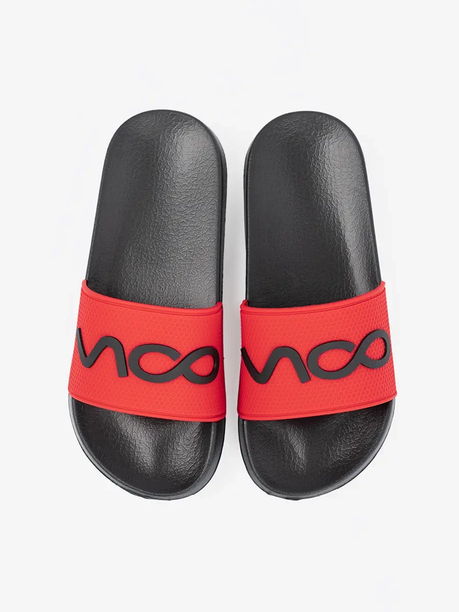 Klapki damskie czarno-czerwone z napisem – elegancja spotyka wygodę