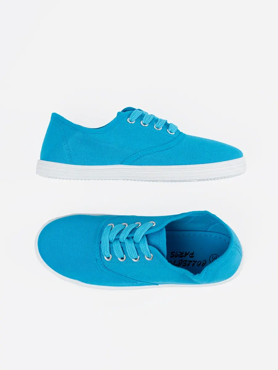 Niebieskie klasyczne tenisówki to połączenie stylu sportowego i casualowego. Żywy kolor dodaje energii i jest w pełni zgodny z najnowszymi trendami. Podeszwa z tworzywa sztucznego z bieżnikiem gwarantuje trwałość i odporność na ścieranie, a także zapewnia stabilność na różnych powierzchniach.