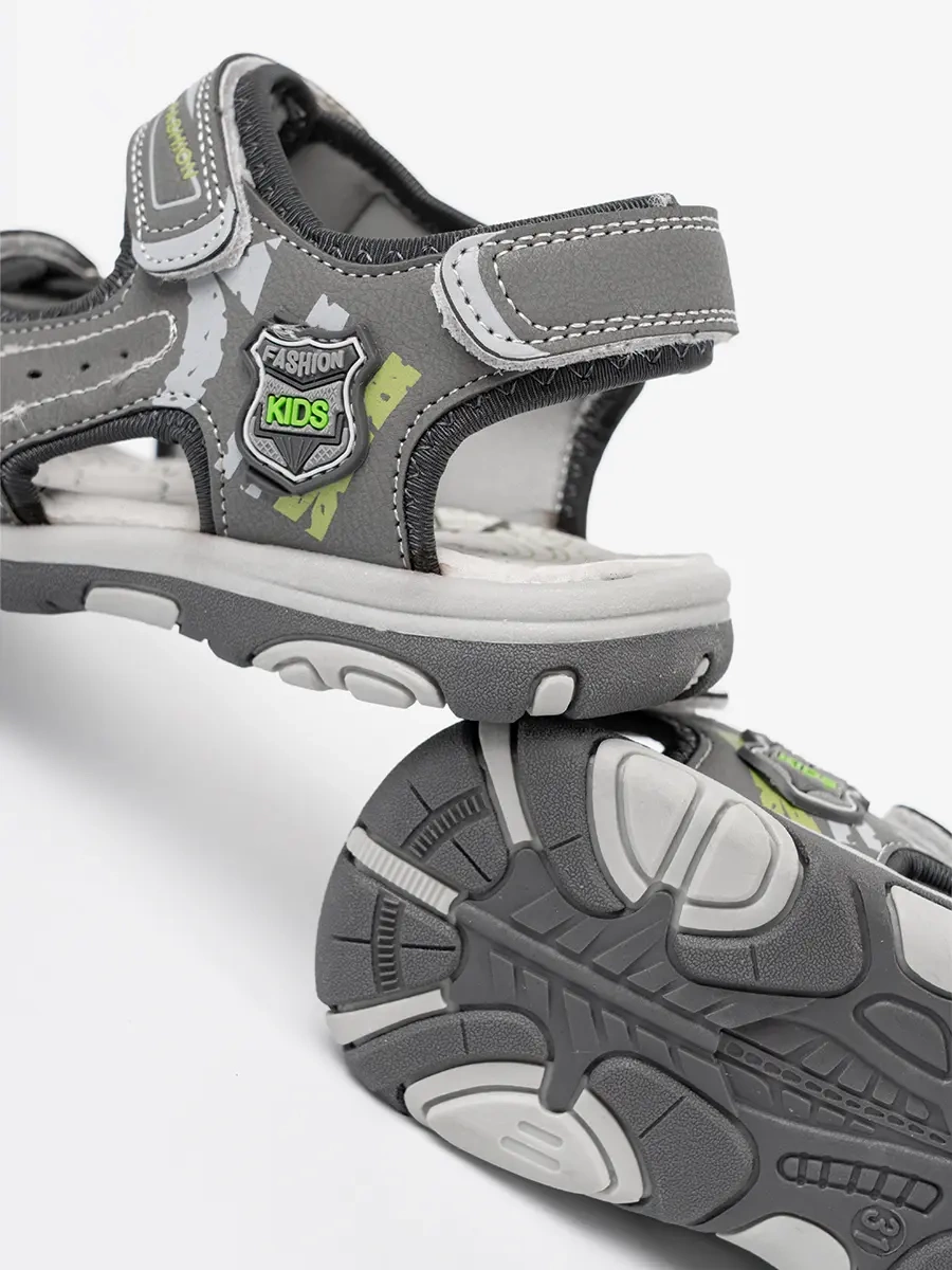 Te chłopięce sandały łączą w sobie modny design i praktyczność. Dzięki uniwersalnemu szaremu kolorowi, pasują do większości letnich stylizacji. Regulowane zapięcie na rzep gwarantuje idealne dopasowanie do stopy, a otwarty nosek i zapiętek zapewniają odpowiednią wentylację, nawet w najgorętsze dni.