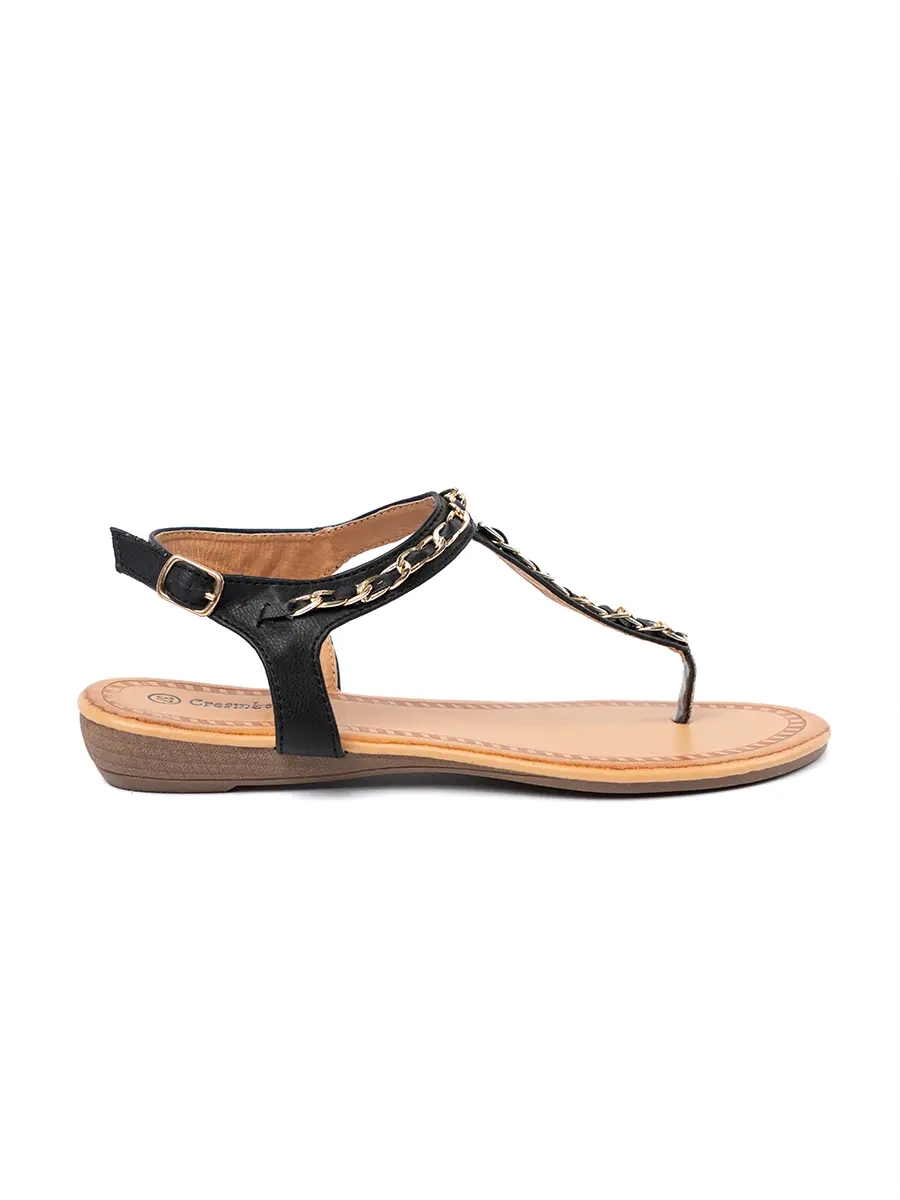 Nasze sandały damskie z ozdobnym łańcuszkiem to doskonały wybór na ciepłe, letnie dni. Doskonale sprawdzą się zarówno podczas spacerów, jak i na eleganckim przyjęciu. Dzięki uniwersalnej czarnej barwie łatwo połączysz je z wieloma stylizacjami, tworząc modny i wyrafinowany look na każdą okazję.
