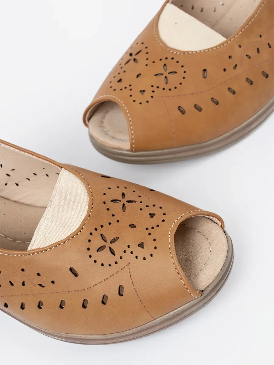 Ażurowe sandały karmelowe na koturnie - wyjątkowy dodatek do Twojej garderoby