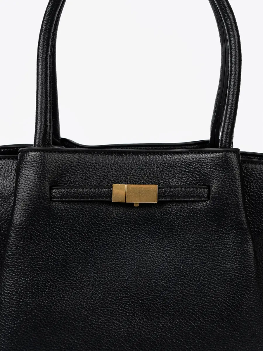 Nasza shopperka wykonana jest z wysokiej jakości skóry ekologicznej, która nie tylko prezentuje się efektownie, ale też zapewnia trwałość na lata. Czarne, złote okucia dodają torebce elegancji i luksusowego charakteru. Jest to produkt, który łączy w sobie styl i praktyczność, idealny na co dzień i na specjalne okazje.