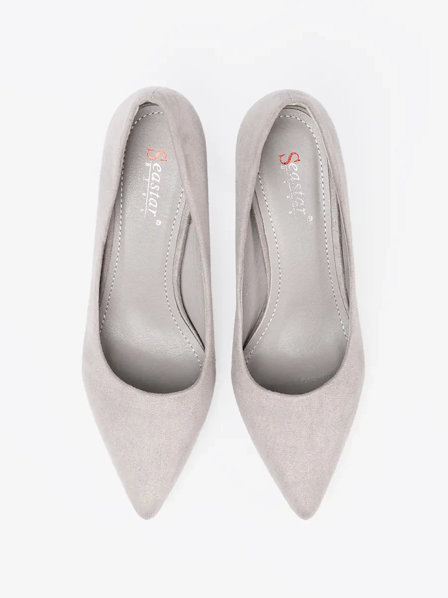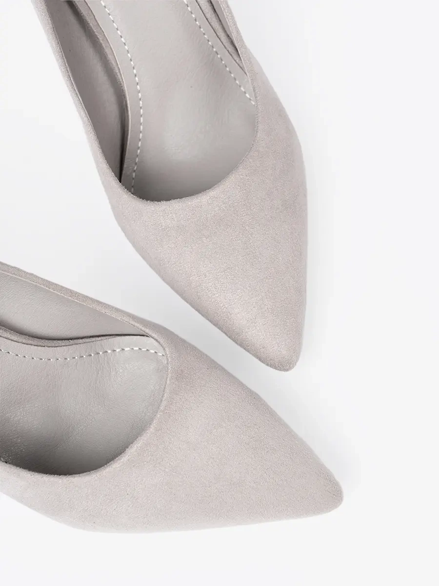 Klasyczne szare szpilki zamszowe - elegancja na co dzień