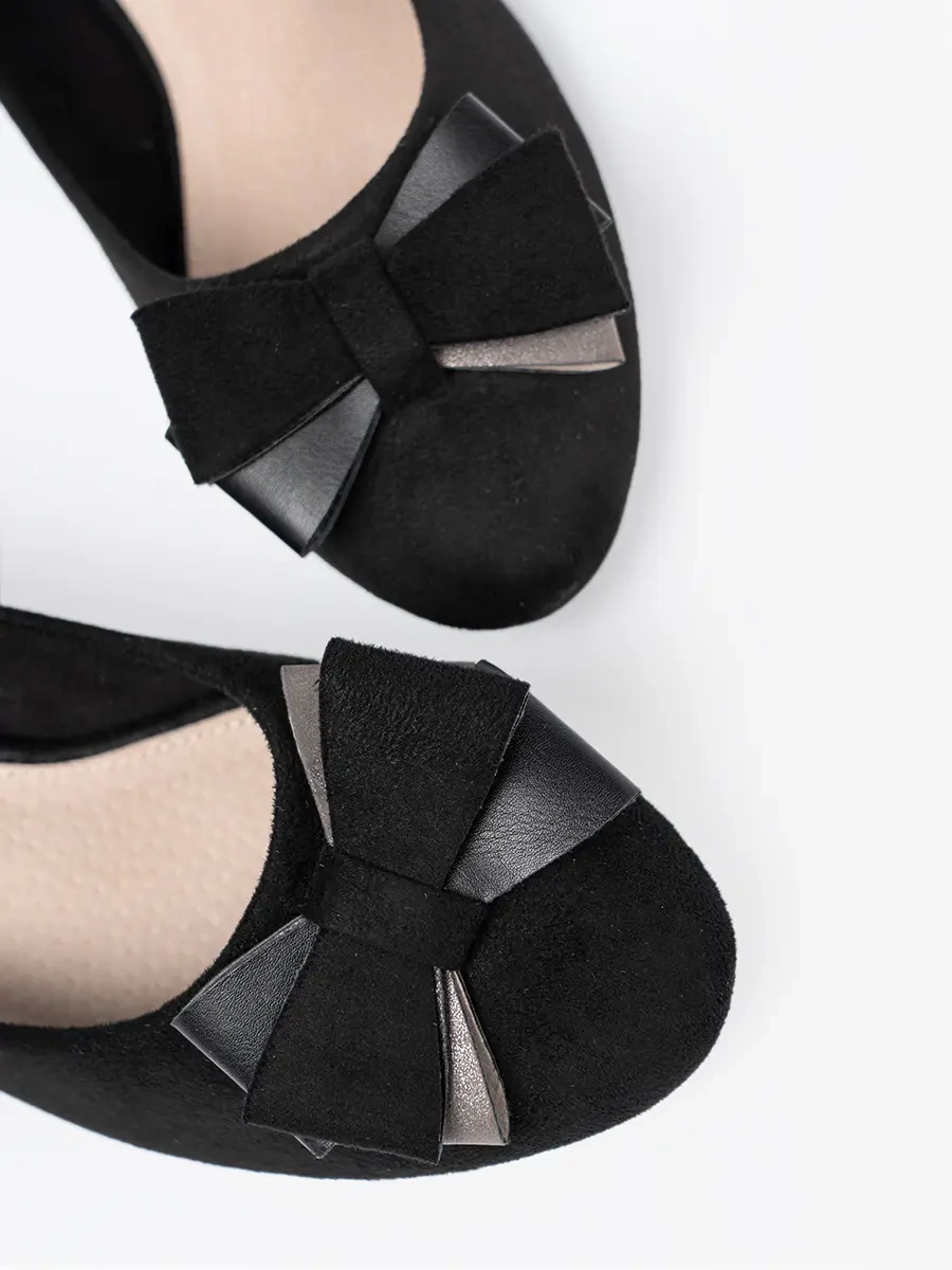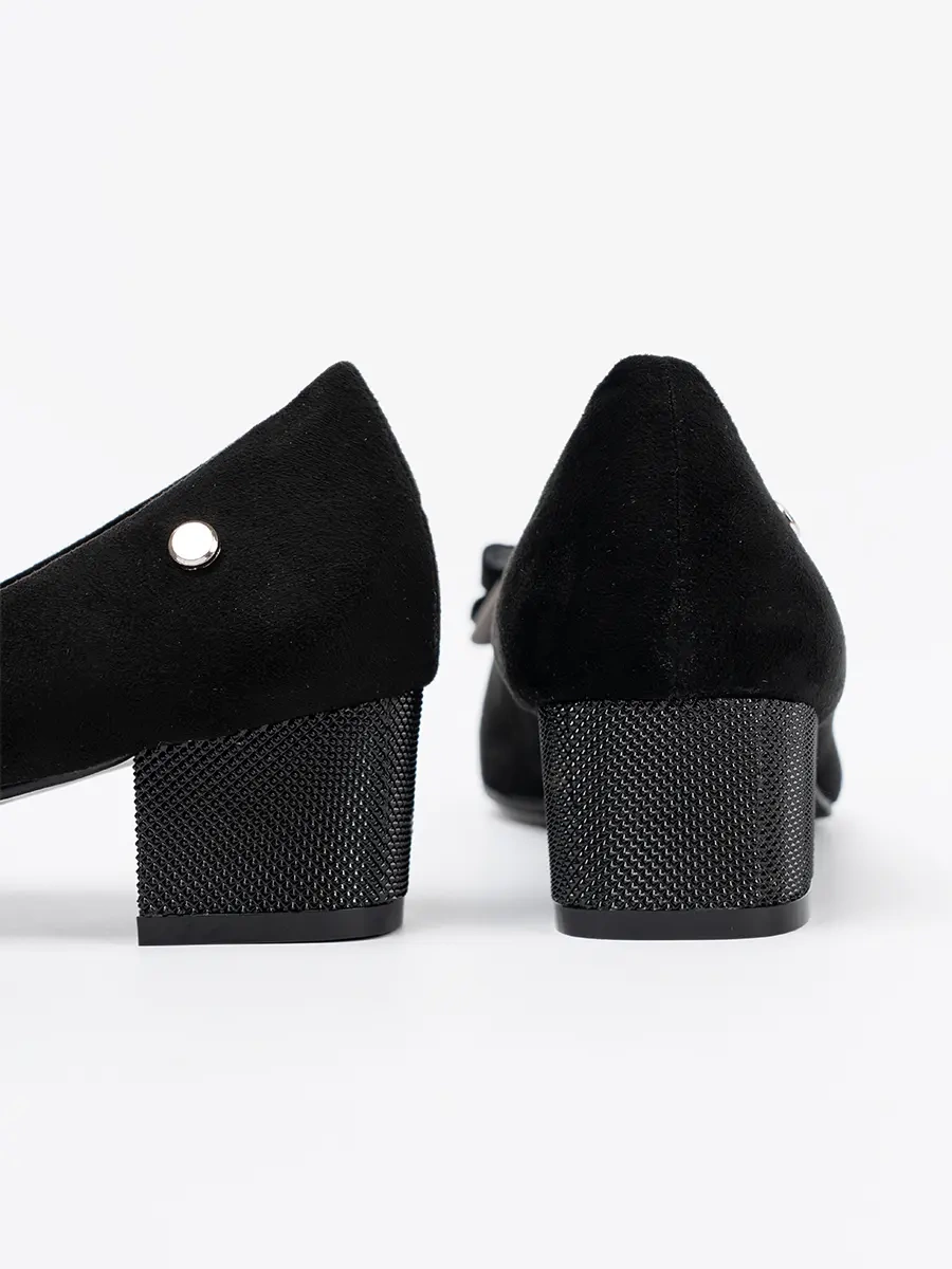 Czarne czółenka z kokardką na słupku – elegancja na co dzień