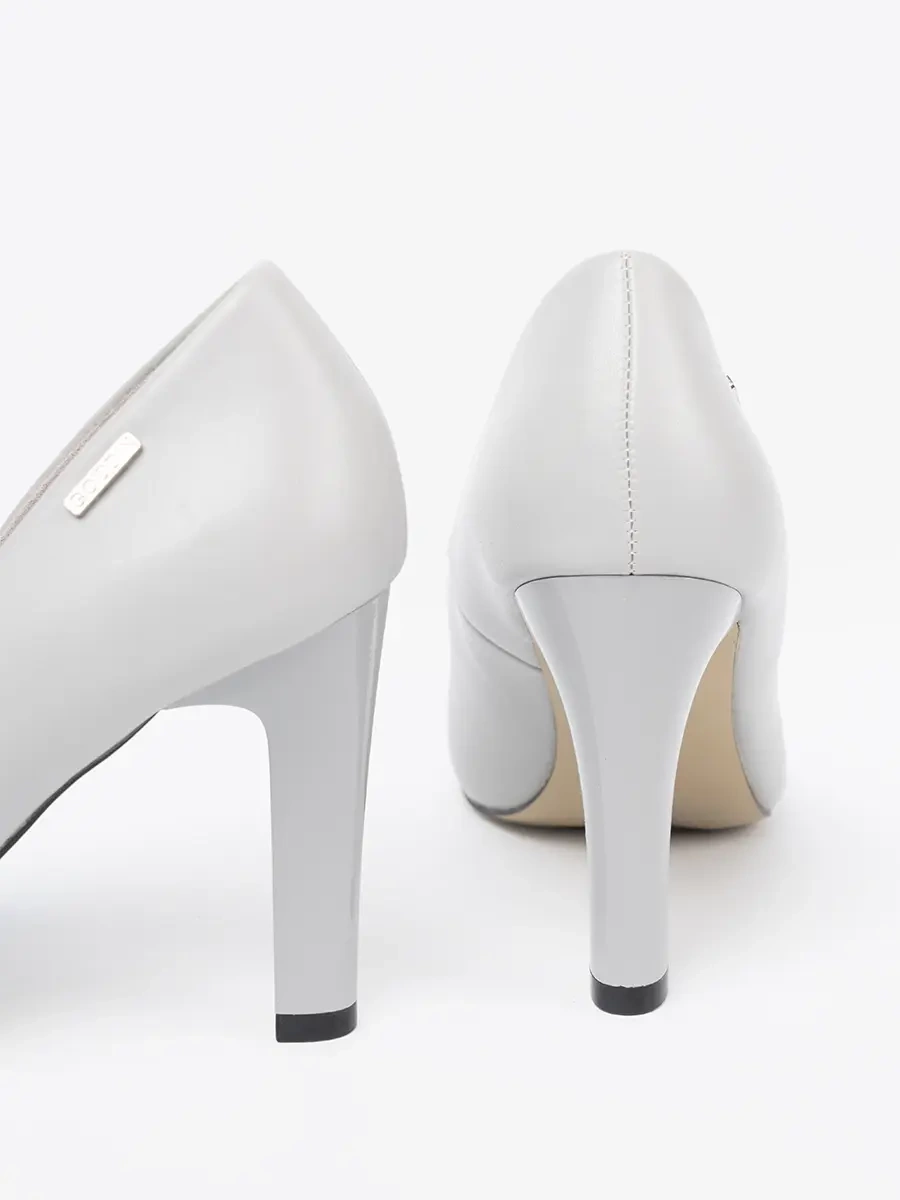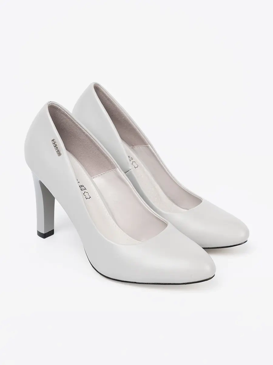 Szare klasyczne czółenka na wysokim obcasie - elegancja w każdym calu