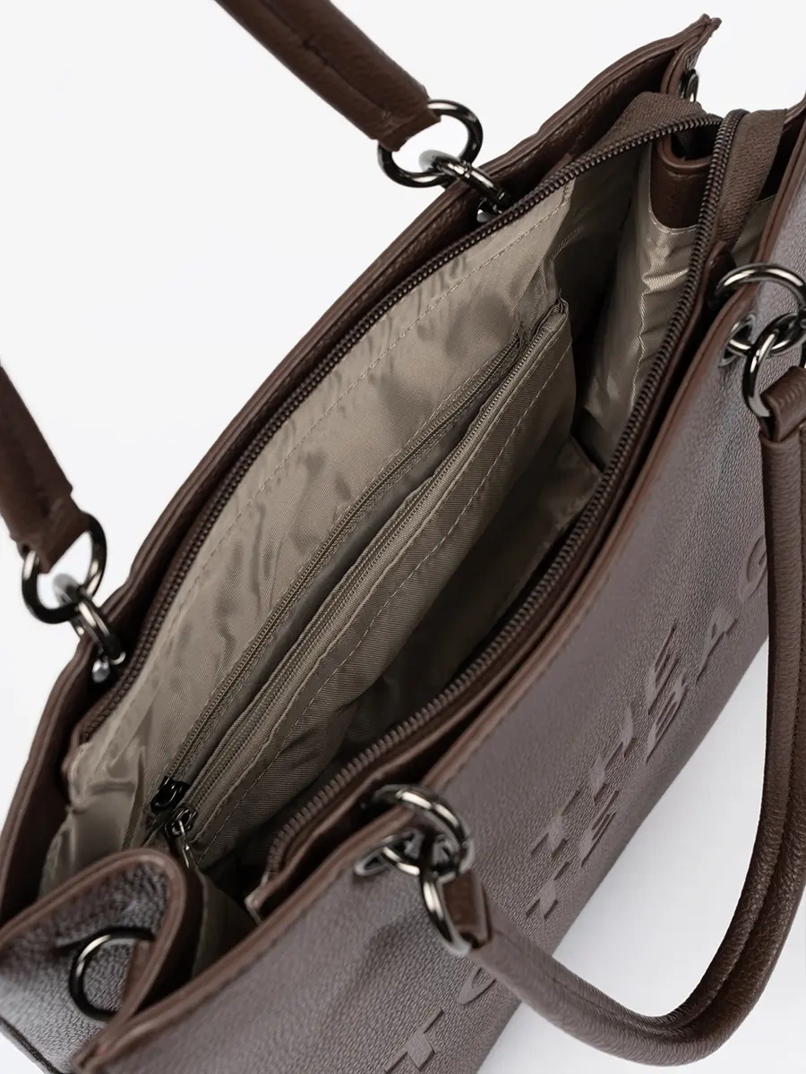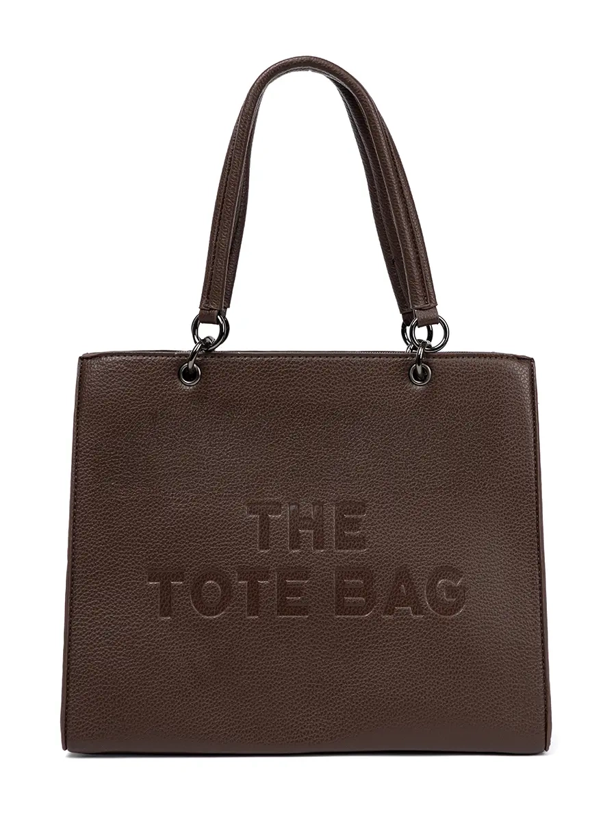 Nasza shopperka została stworzona z myślą o kobietach ceniących luksus i praktyczność. Wykonana z wysokiej jakości ekologicznej skóry, zapewnia nie tylko stylowy wygląd, ale także trwałość na lata. Tłoczony napis dodaje charakteru, a ciemnobrązowy kolor jest niezwykle uniwersalny i pasuje do wielu stylizacji.