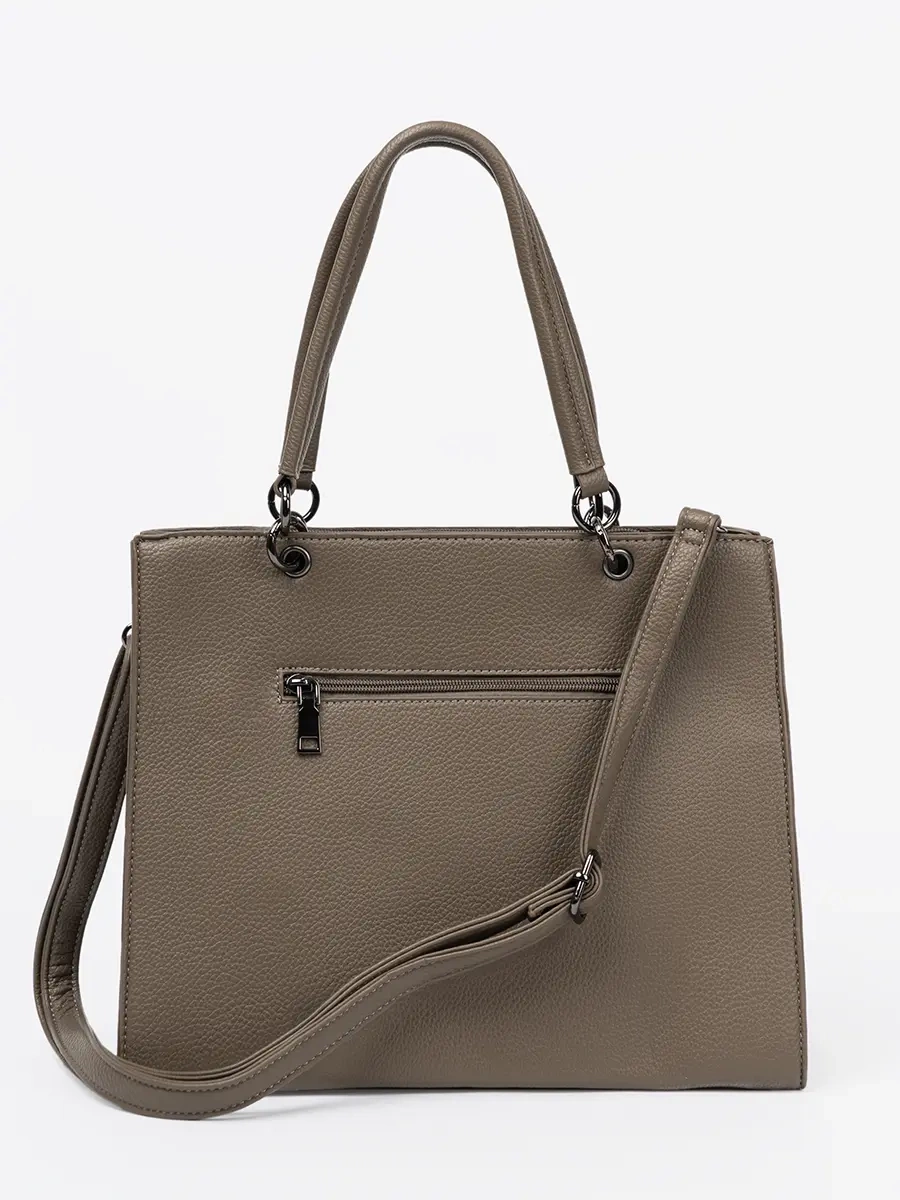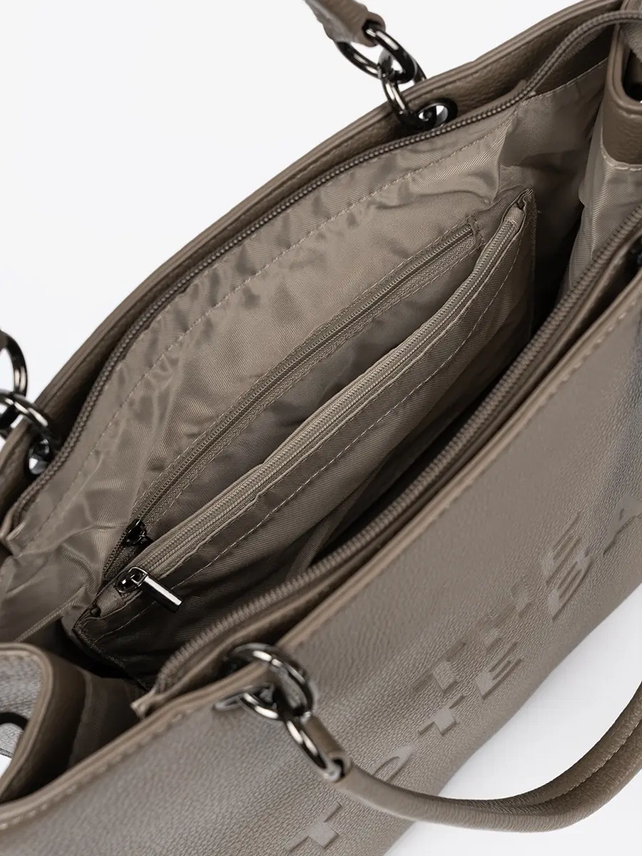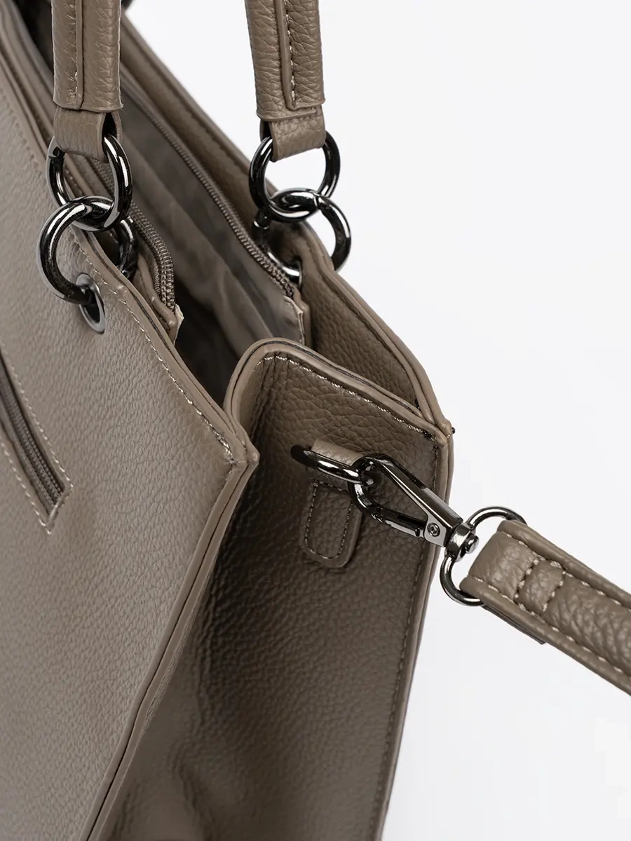 Nasza torebka powstała z troską o każdy detal. Wykonana z wysokiej jakości skóry ekologicznej, nie tylko zachwyca swoim wyglądem, ale również gwarantuje trwałość na lata. Srebrne okucia dodają jej charakteru, a ciemnobeżowy kolor sprawia, że pasuje do każdej stylizacji.