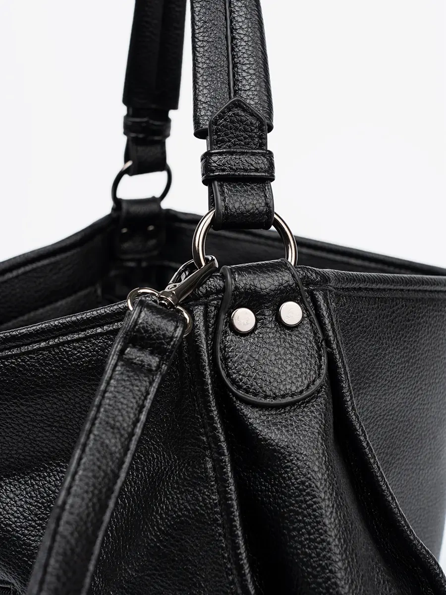 Nasza torebka na ramię została stworzona z myślą o kobietach ceniących komfort i wysoką jakość. Wykonana z ekologicznej skóry, zapewnia nie tylko elegancki wygląd, ale także trwałość na lata. Klasyczny, czarny kolor pasuje do każdej stylizacji i dodaje charakteru zarówno codziennym, jak i wieczorowym outfitom.