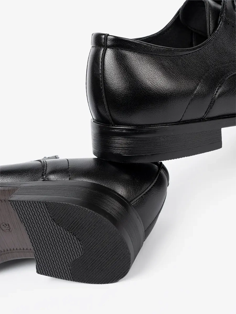 Te eleganckie półbuty męskie zapewniają komfort noszenia przez cały dzień. Pełny nosek i miękki zapiętek gwarantują optymalne dopasowanie do stopy. Dodatkowo, podeszwa z tworzywa sztucznego z bieżnikiem zapewnia stabilność i bezpieczeństwo na każdym kroku.