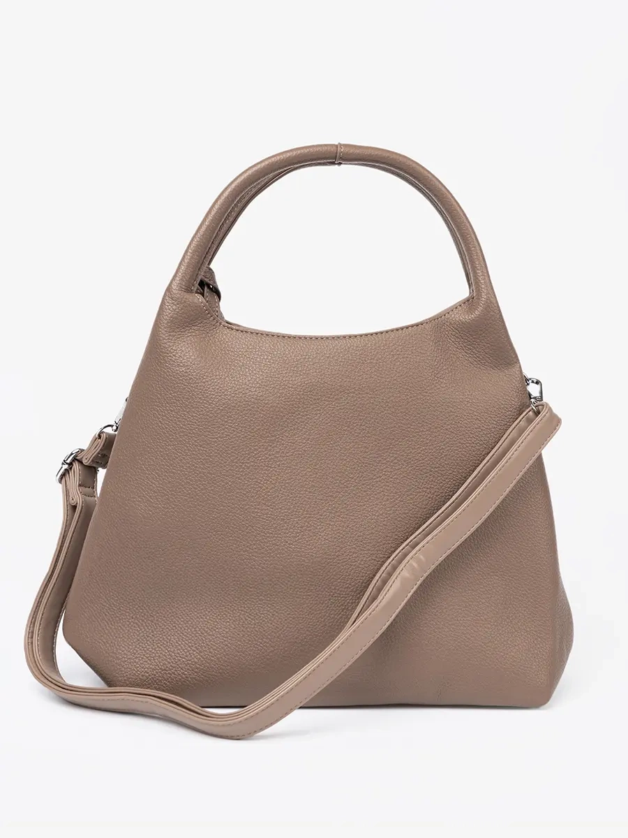 Nasza elegancka torebka damska w kolorze ciemnobeżowym to must-have w garderobie każdej modnej kobiety. Doskonale sprawdzi się zarówno w biurze, na eleganckim przyjęciu, jak i podczas codziennych wyjść. Łatwo połączysz ją z klasyczną małą czarną, eleganckimi spodniami czy zwiewną sukienką, tworząc niezapomniane stylizacje na każdą okazję.