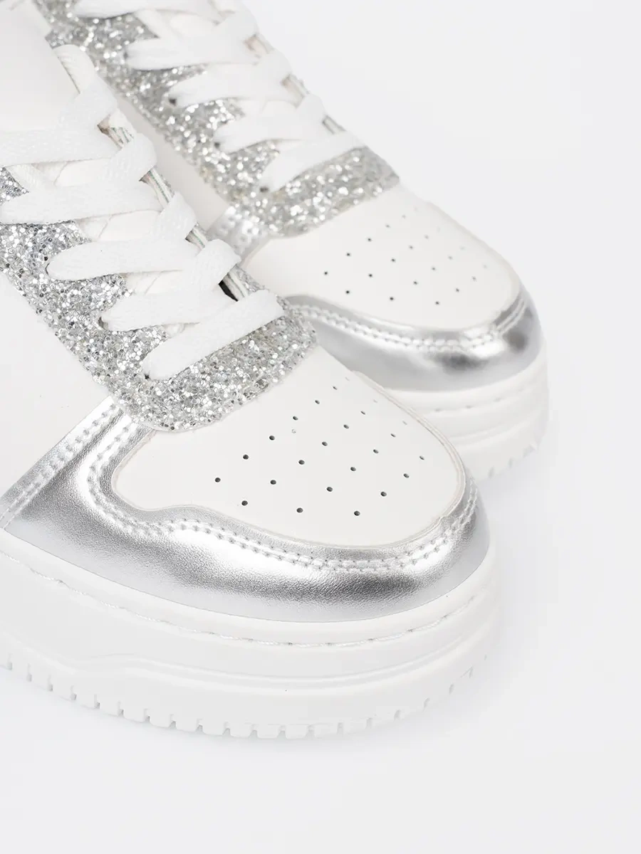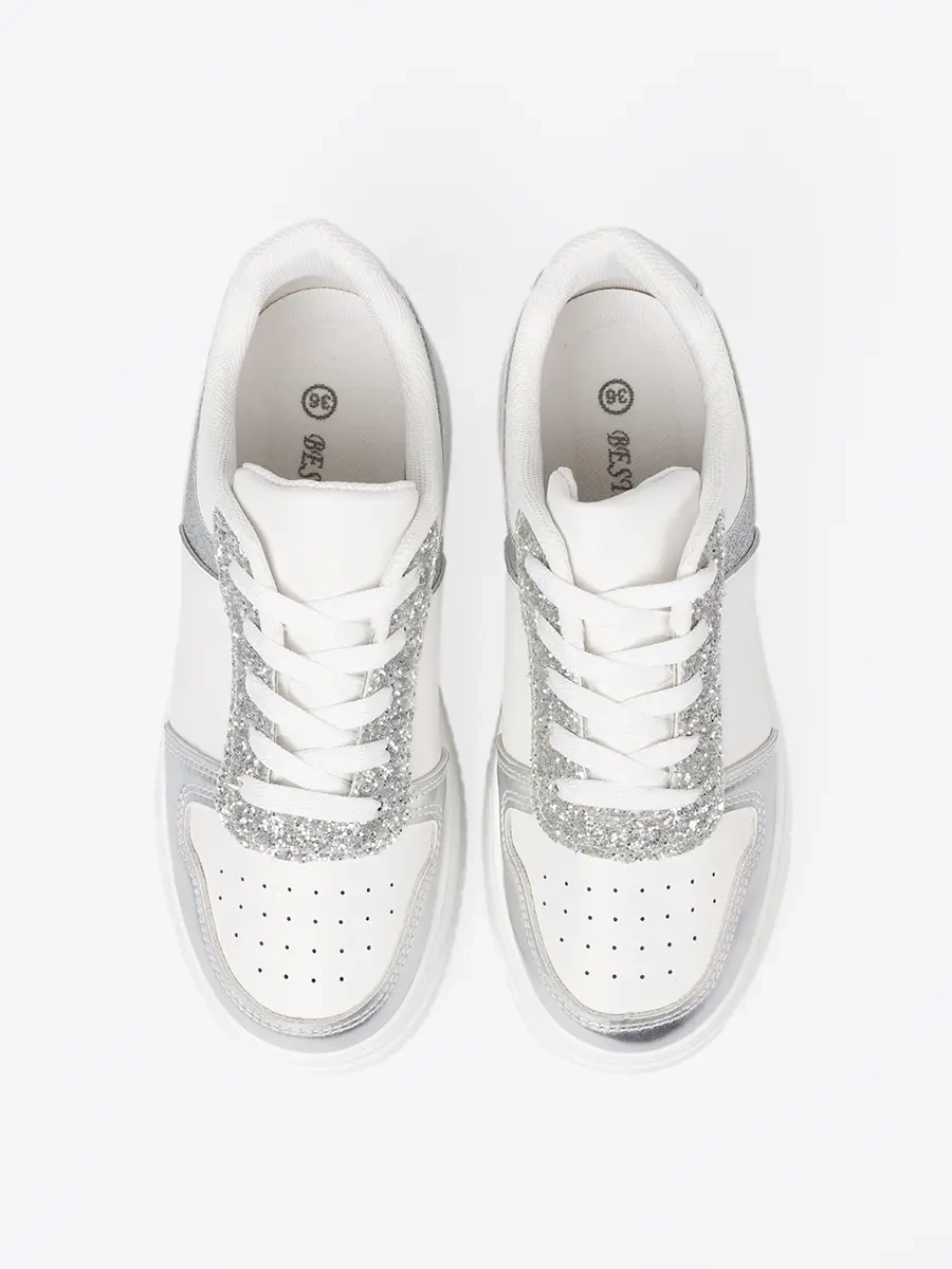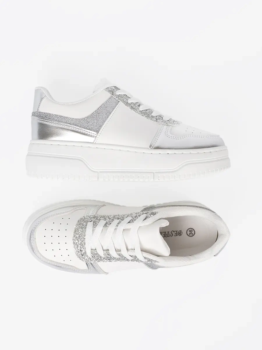Poznaj nasze nowości – biało-srebrne sneakersy z połyskującymi detalami, które łączą w sobie elegancję i wygodę. Te niezwykłe buty to połączenie nowoczesnego designu z funkcjonalnością, oferując Ci obuwie, które będzie idealnym uzupełnieniem każdej stylizacji.