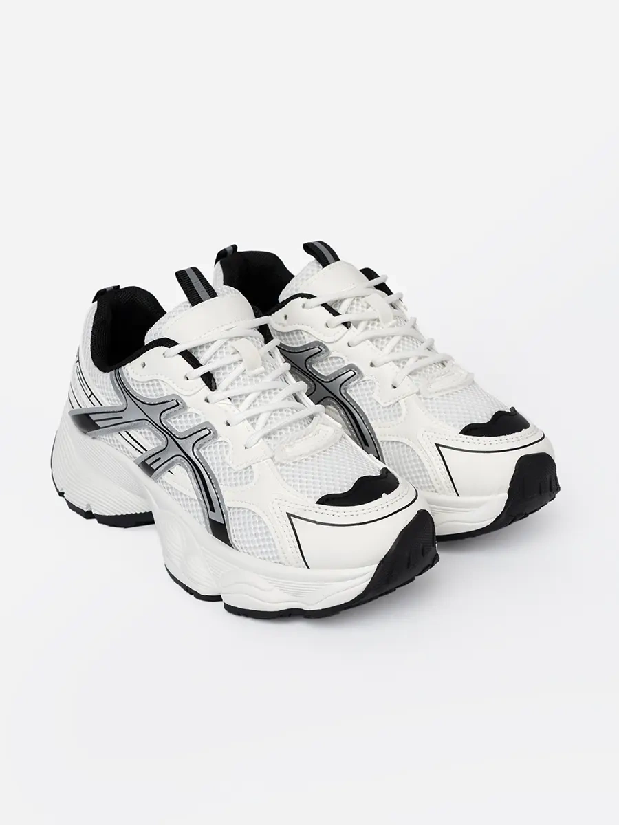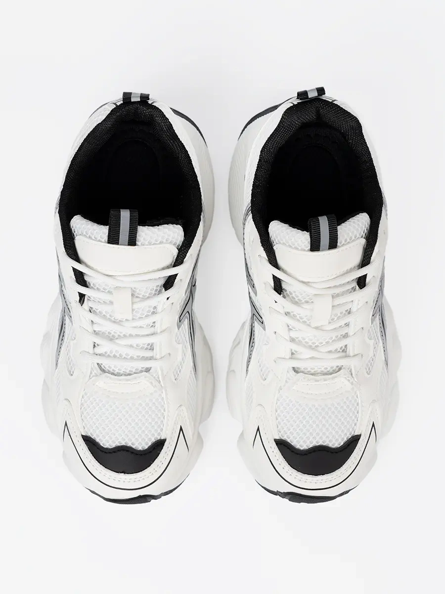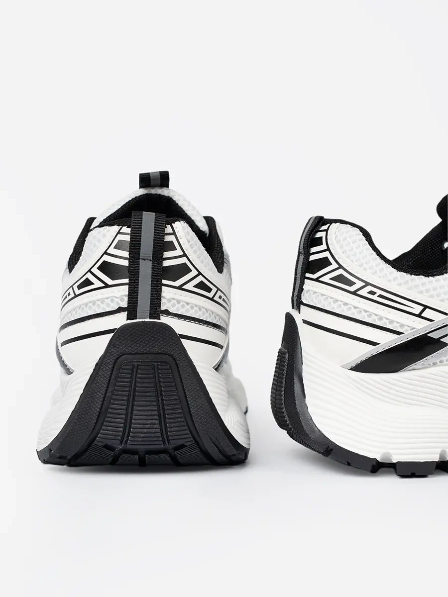 Te wyjątkowe sneakersy zaskakują swoim oryginalnym wyglądem. Biało-czarne połączenie kolorystyczne w połączeniu z siatką dodaje im lekkości i świeżości. Wykonane z wysokiej jakości imitacji skóry i materiału tekstylnego, gwarantują nie tylko atrakcyjny wygląd, ale także trwałość i wytrzymałość na długie lata.