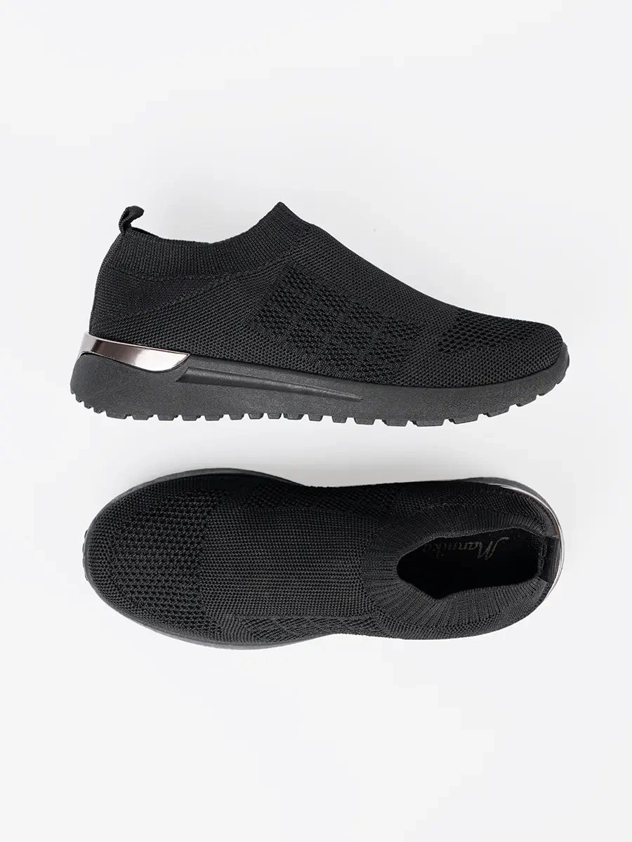 Nasze sportowe buty slip-on zostały stworzone z myślą o kobietach ceniących wygodę i nowoczesny styl. Wykonane z wysokiej jakości materiału tekstylnego, zapewniają nie tylko atrakcyjny wygląd, ale także trwałość na lata. Uniwersalny, czarny kolor dodaje charakteru i pasuje zarówno do sportowych, jak i casualowych stylizacji.