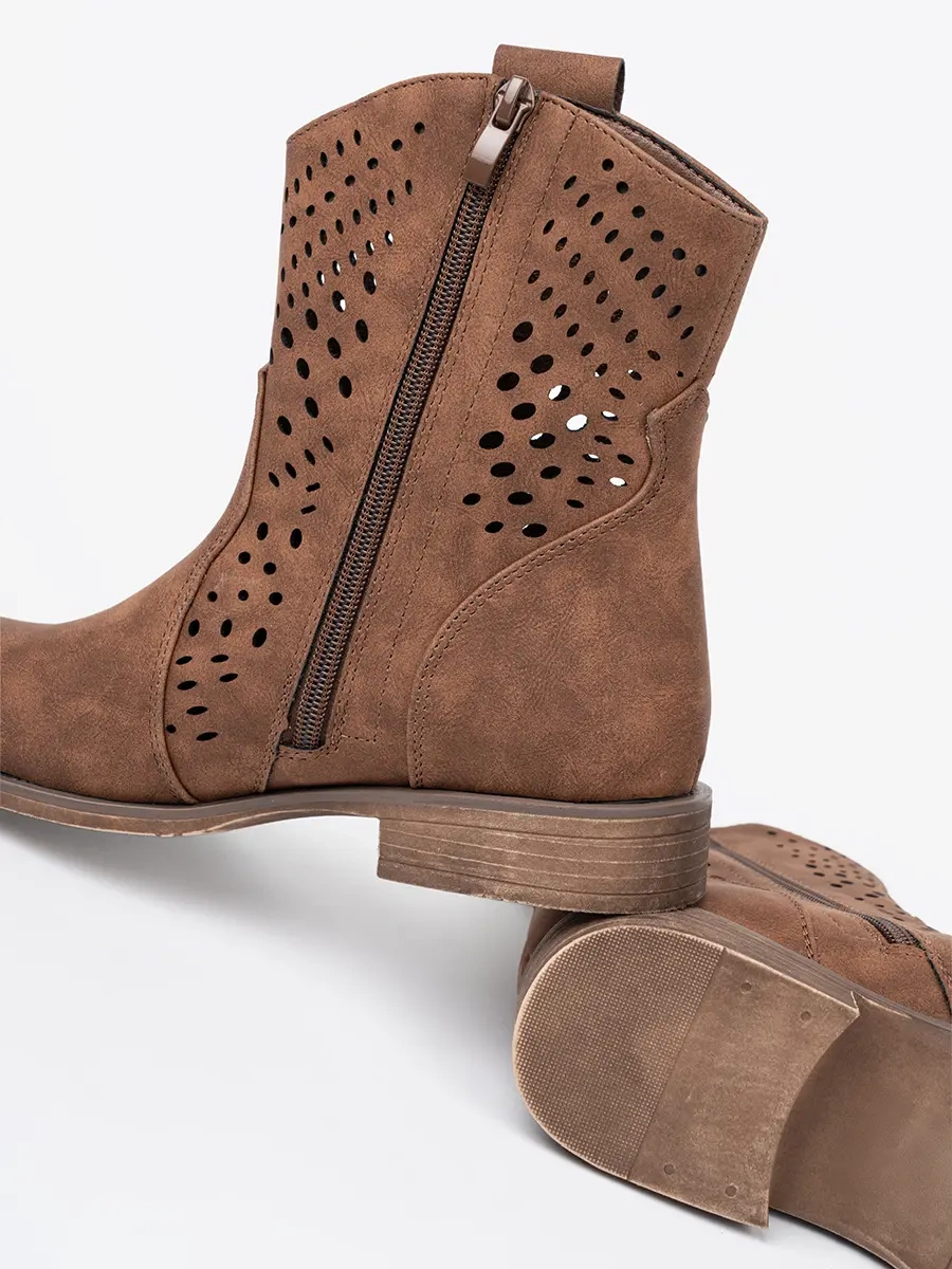 Nasze ażurowe botki zostały stworzone z myślą o kobietach ceniących jakość i komfort. Wykonane z wysokiej jakości ekologicznej skóry, zapewniają nie tylko oszałamiający wygląd, ale także trwałość na lata. Ciepły, brązowy odcień dodaje charakteru i pasuje zarówno do eleganckich, jak i casualowych stylizacji.