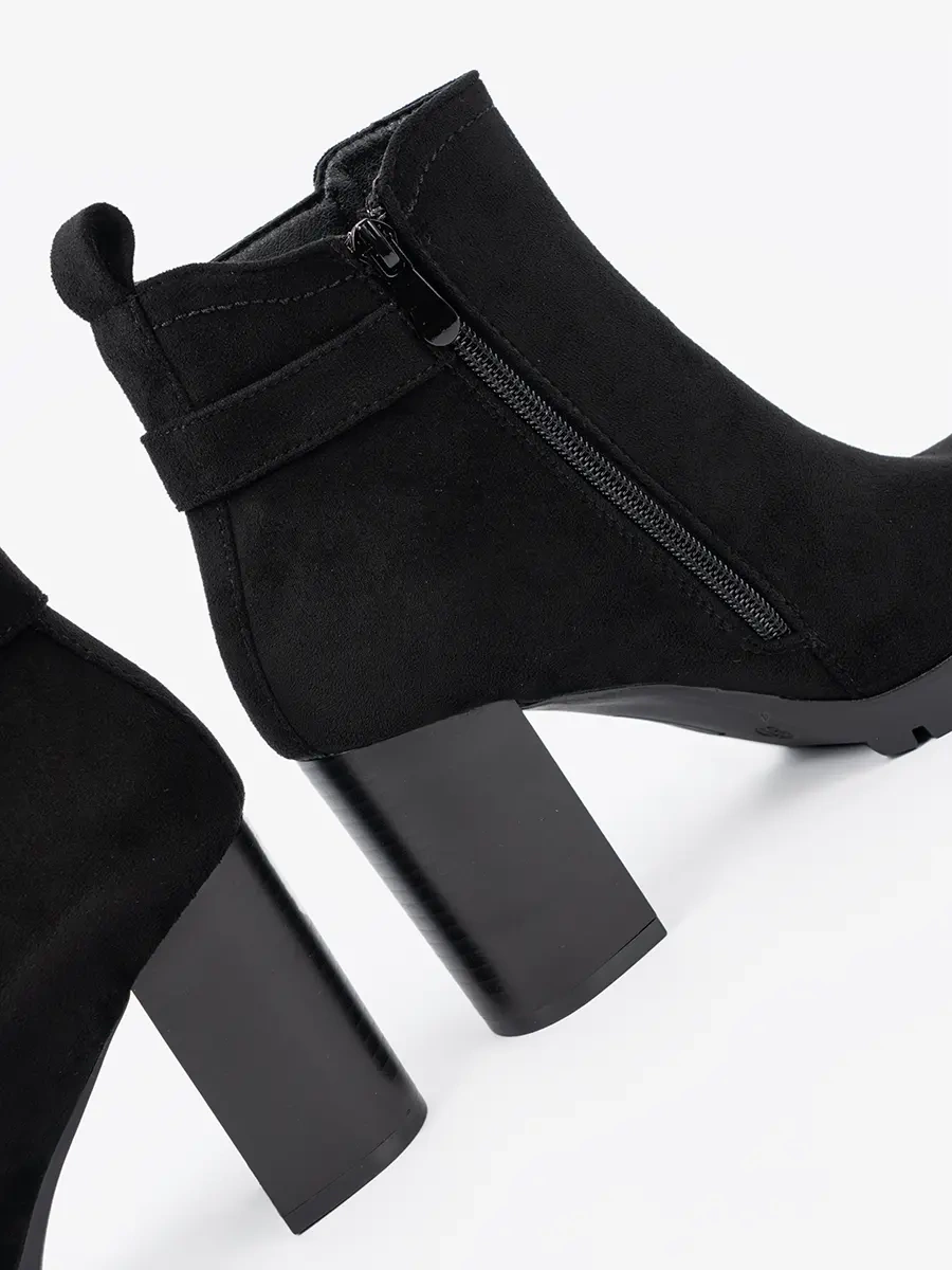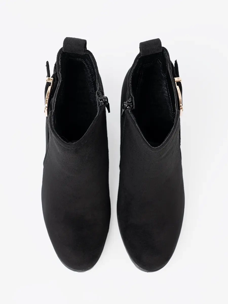Nasze botki damskie zostały stworzone z myślą o kobietach ceniących luksus i komfort. Wykonane z wysokiej jakości imitacji zamszu, zapewniają nie tylko oszałamiający wygląd, ale także trwałość na lata. Klasyczny czarny kolor dodaje charakteru i pasuje zarówno do eleganckich, jak i casualowych stylizacji.